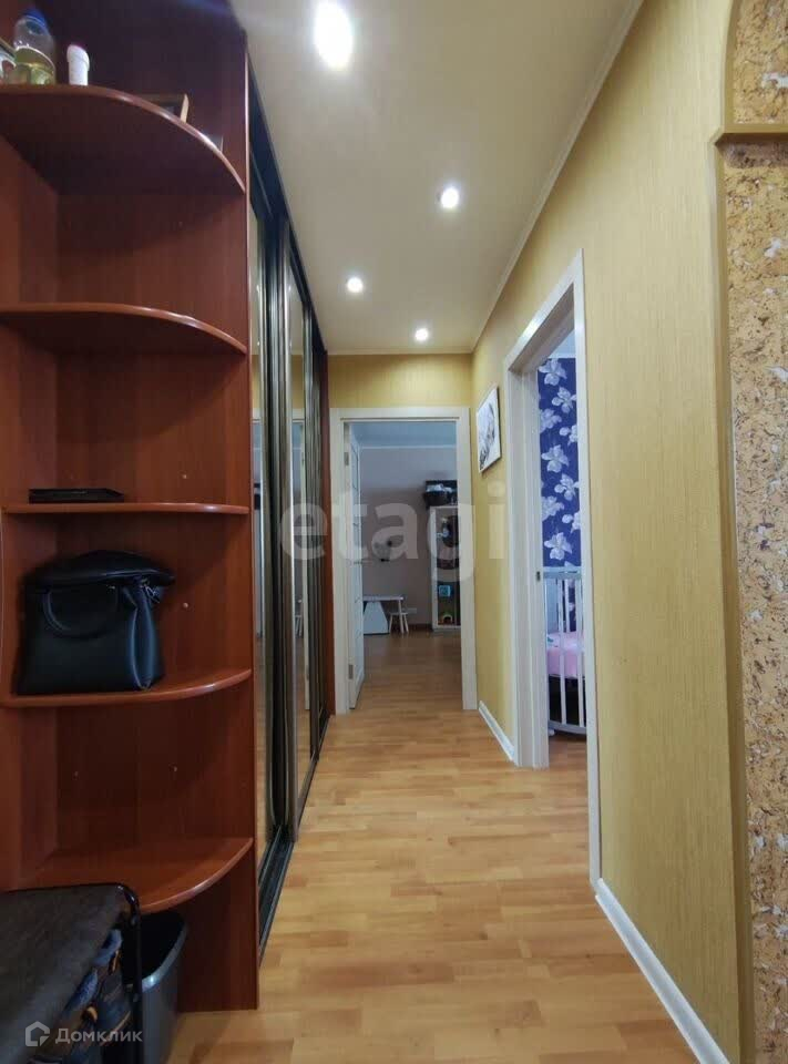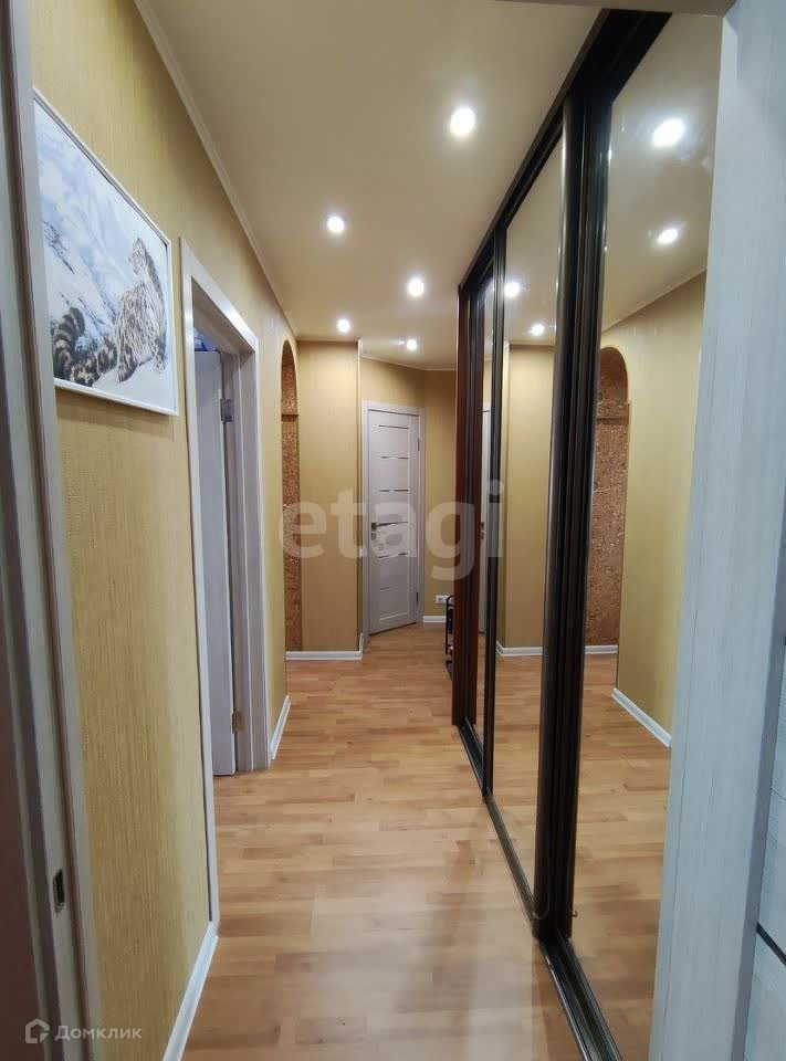 Новая входная дверь, новый балкон и межкомнатные двери, в квартире 2 встроенных шкафа (в прихожей и большой комнате), на кухне встроенный гарнитур со столешницей из искусственного камня, варочная панель и вытяжка. Площадь кухни увеличена за счет совмещения санузла.