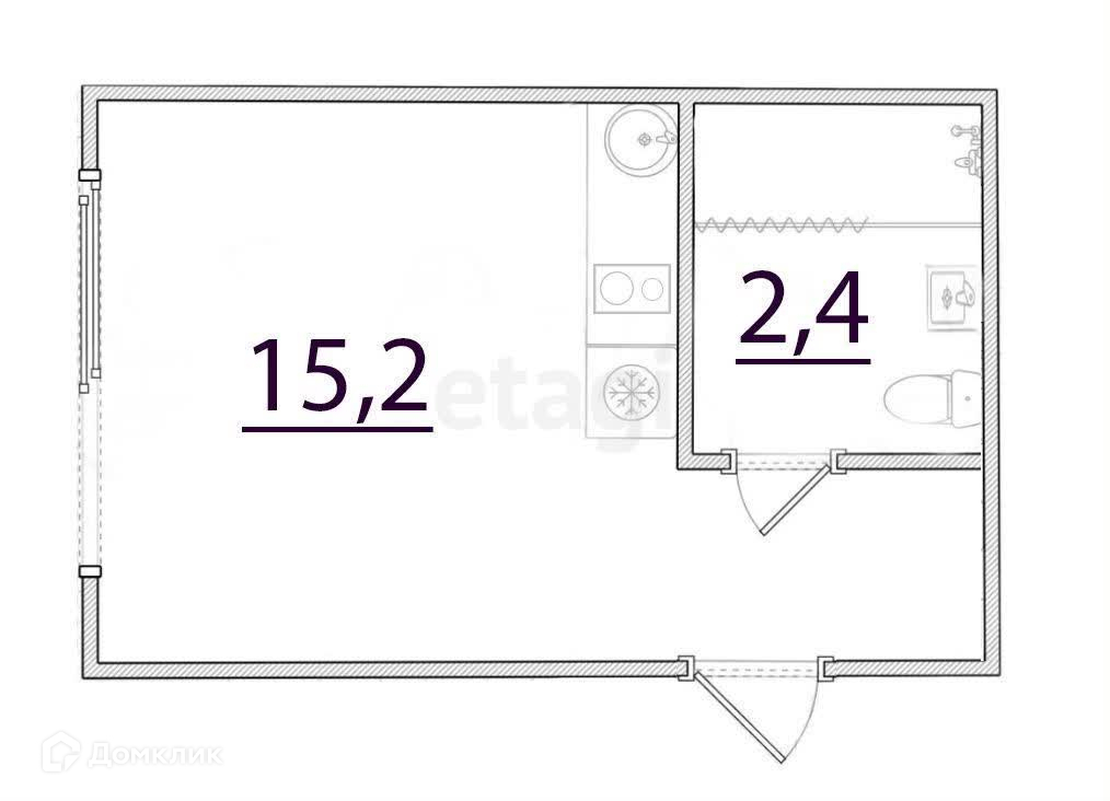 Общая площадь 17.6 м2
