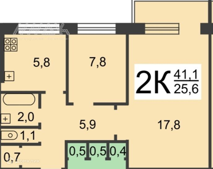 Общая площадь 41.1 м2