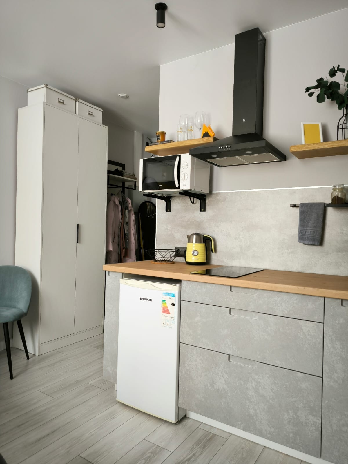 Общая площадь 17.2 м2. Дизайнерский ремонт сделан в 2023 г., в т.ч. заменена электрика, сантехника, установлен накопительный водонагреватель и кондиционер.