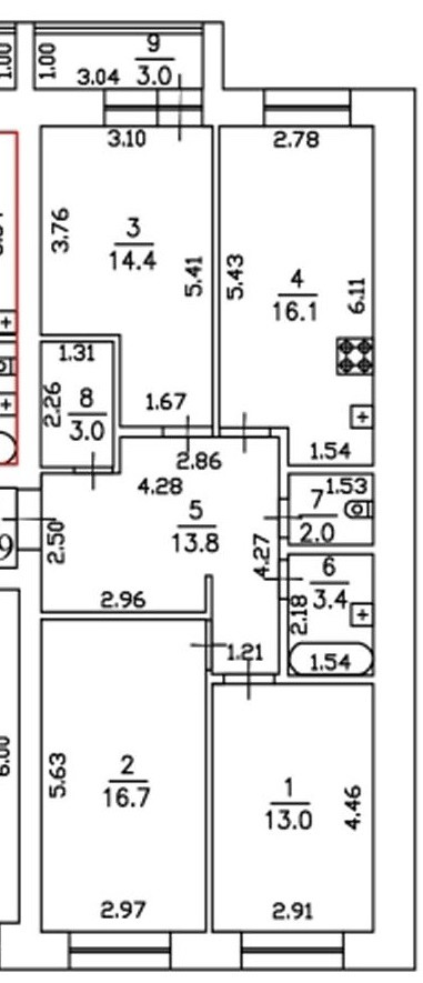 Жилая площадь 44.1 м2