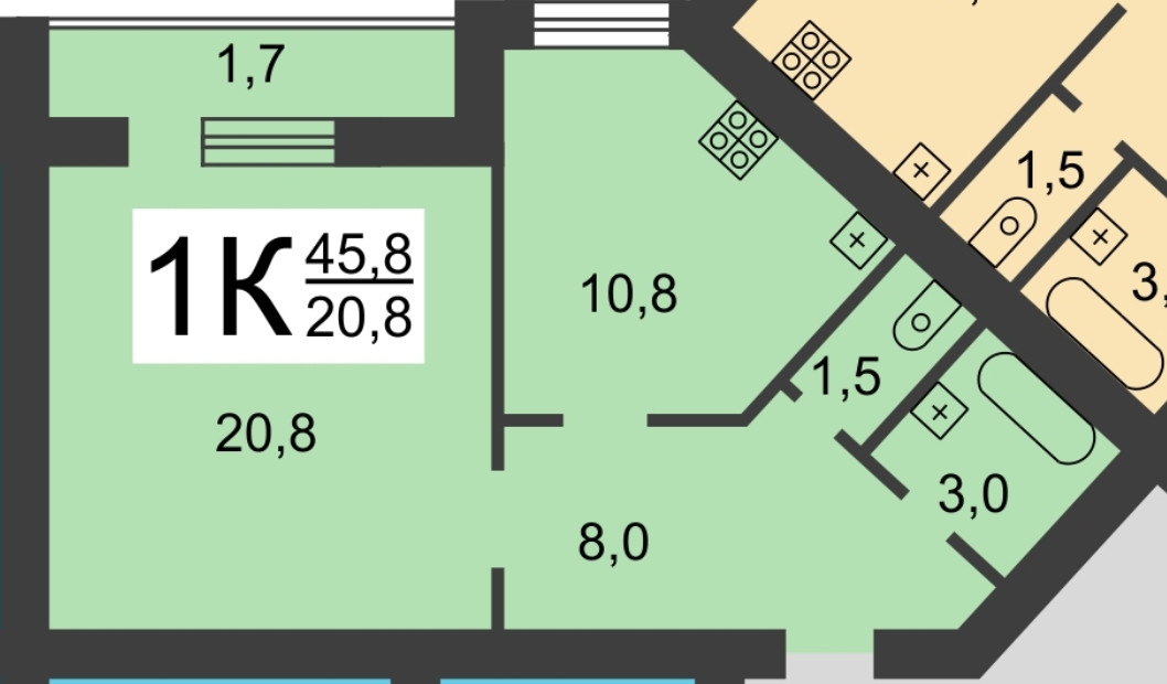 Общая площадь 45 м2