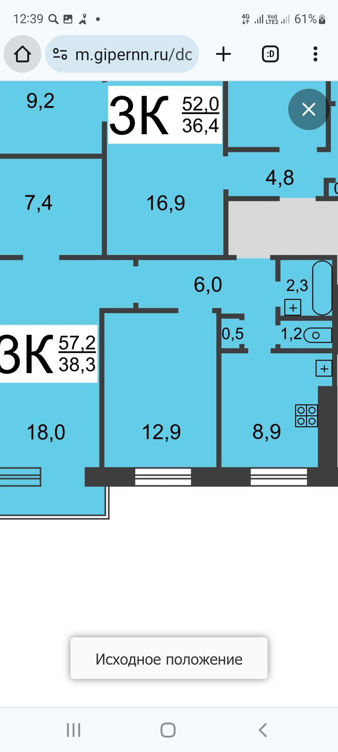 Общая площадь 57.1 м2