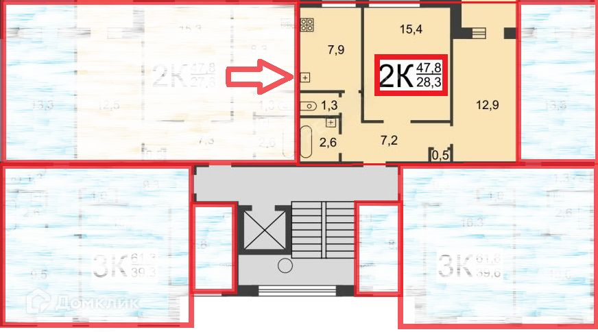 Общая площадь 47.8 м2