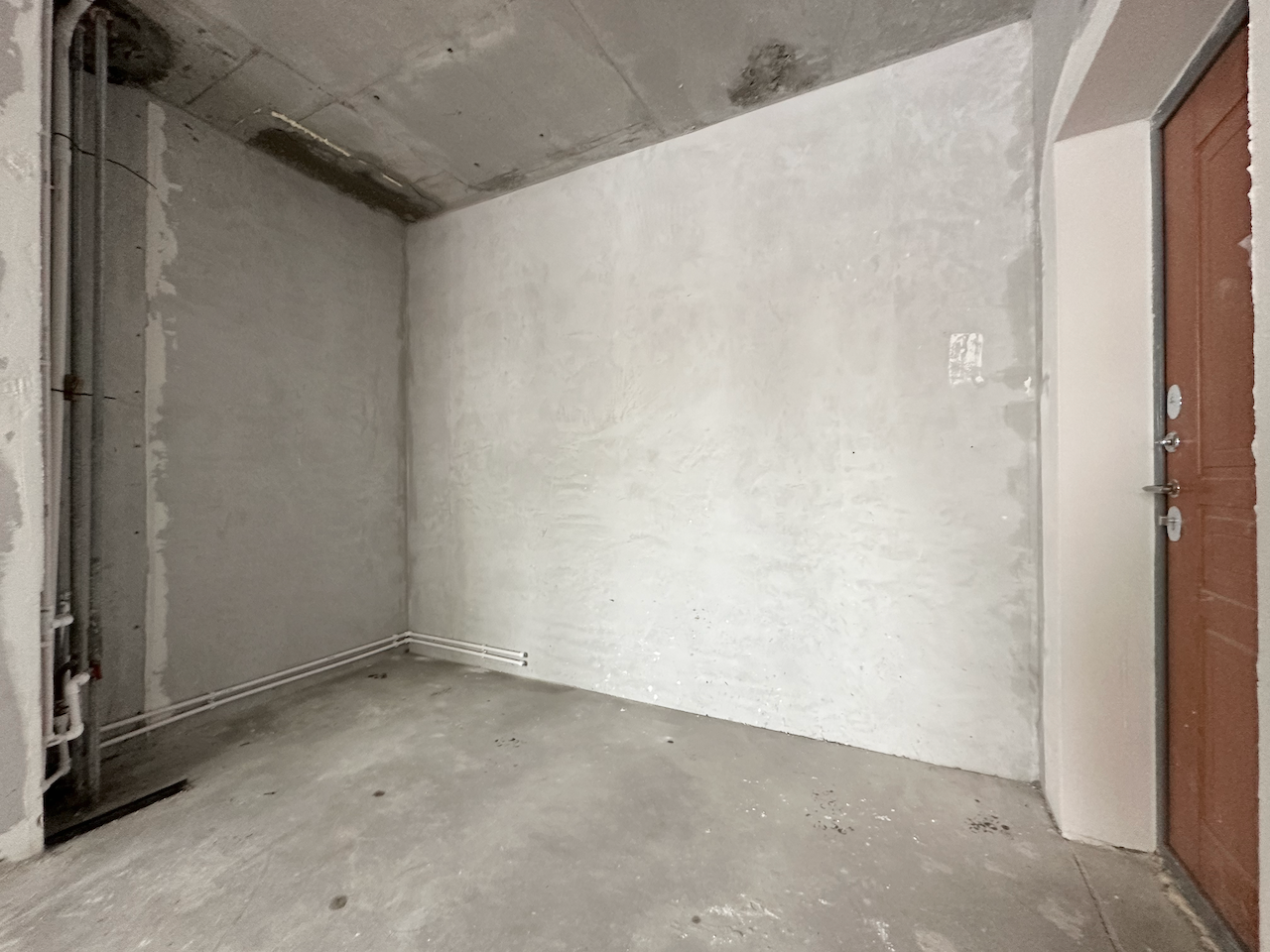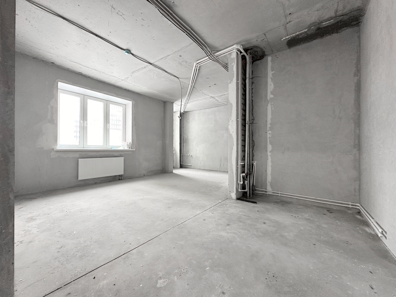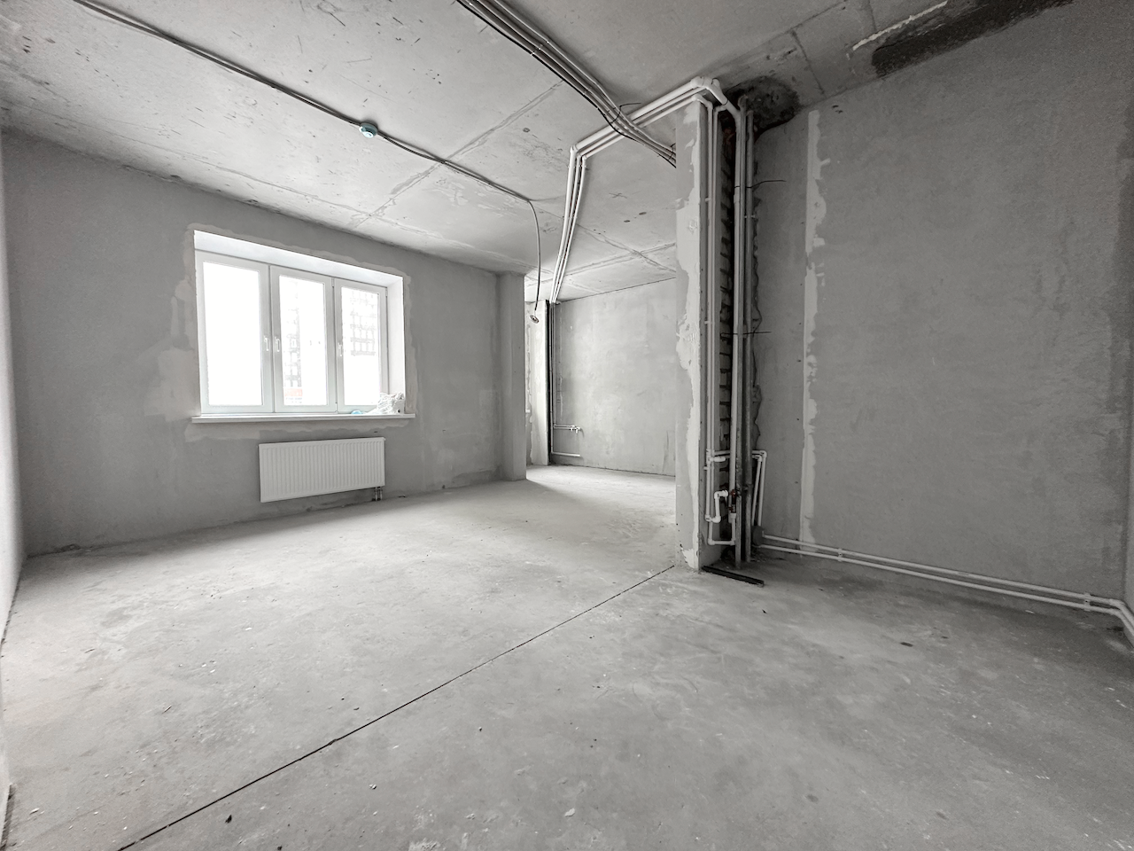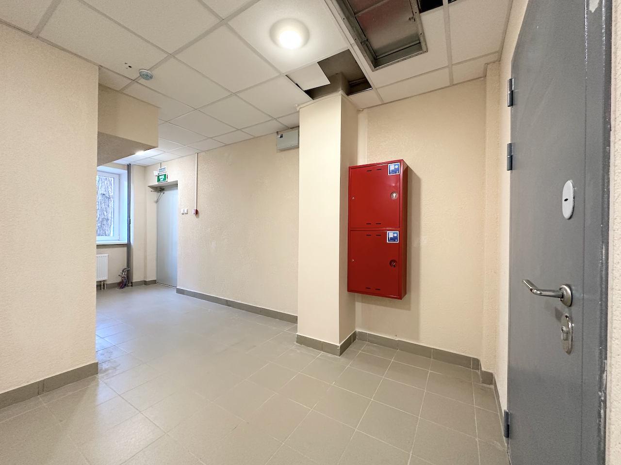 "Под отделку", установлены стеклопакеты, стальная антивзломная дверь с замками сейфового типа, отопление, электричество, пожарная сигнализация, чистовой пол - бетонная стежка, все окна во двор.