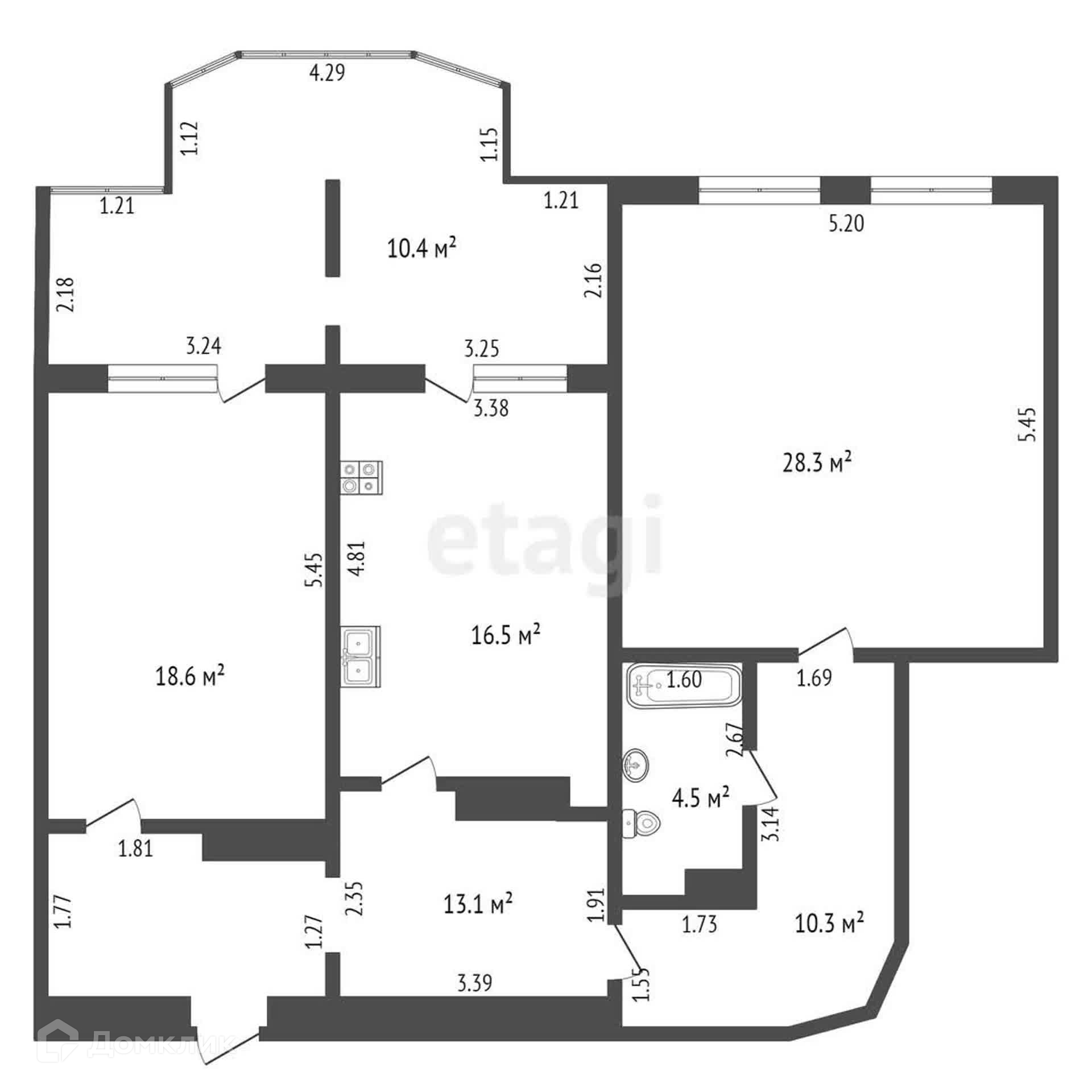 + Общая площадь целых 101,7 кв.м. делают квартиру просторной и комфортабельной;