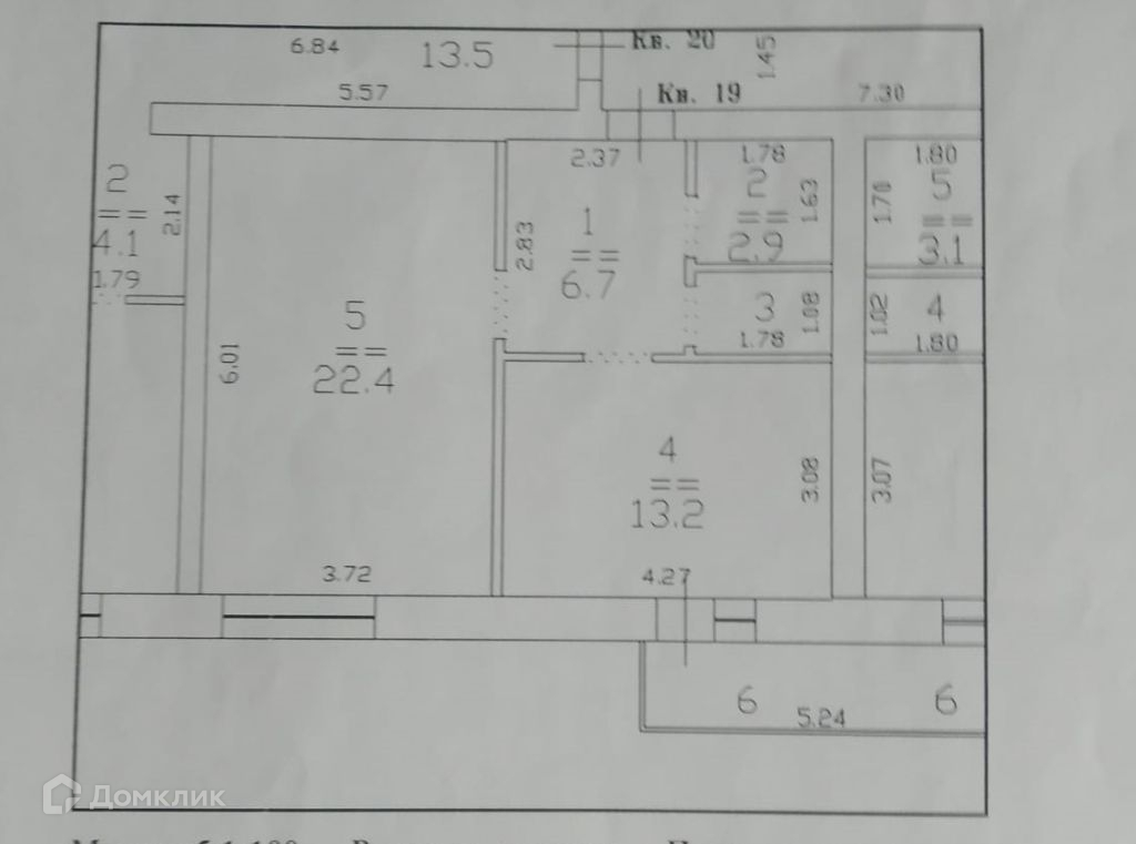 Жилая площадь 22.4 м2