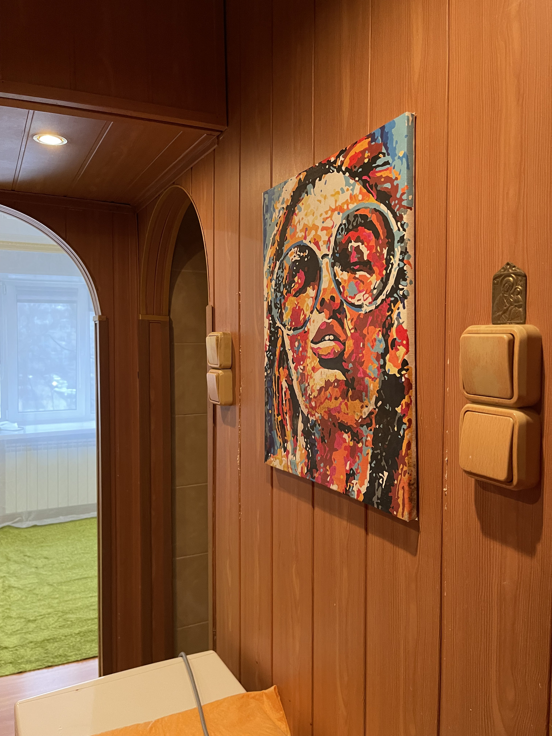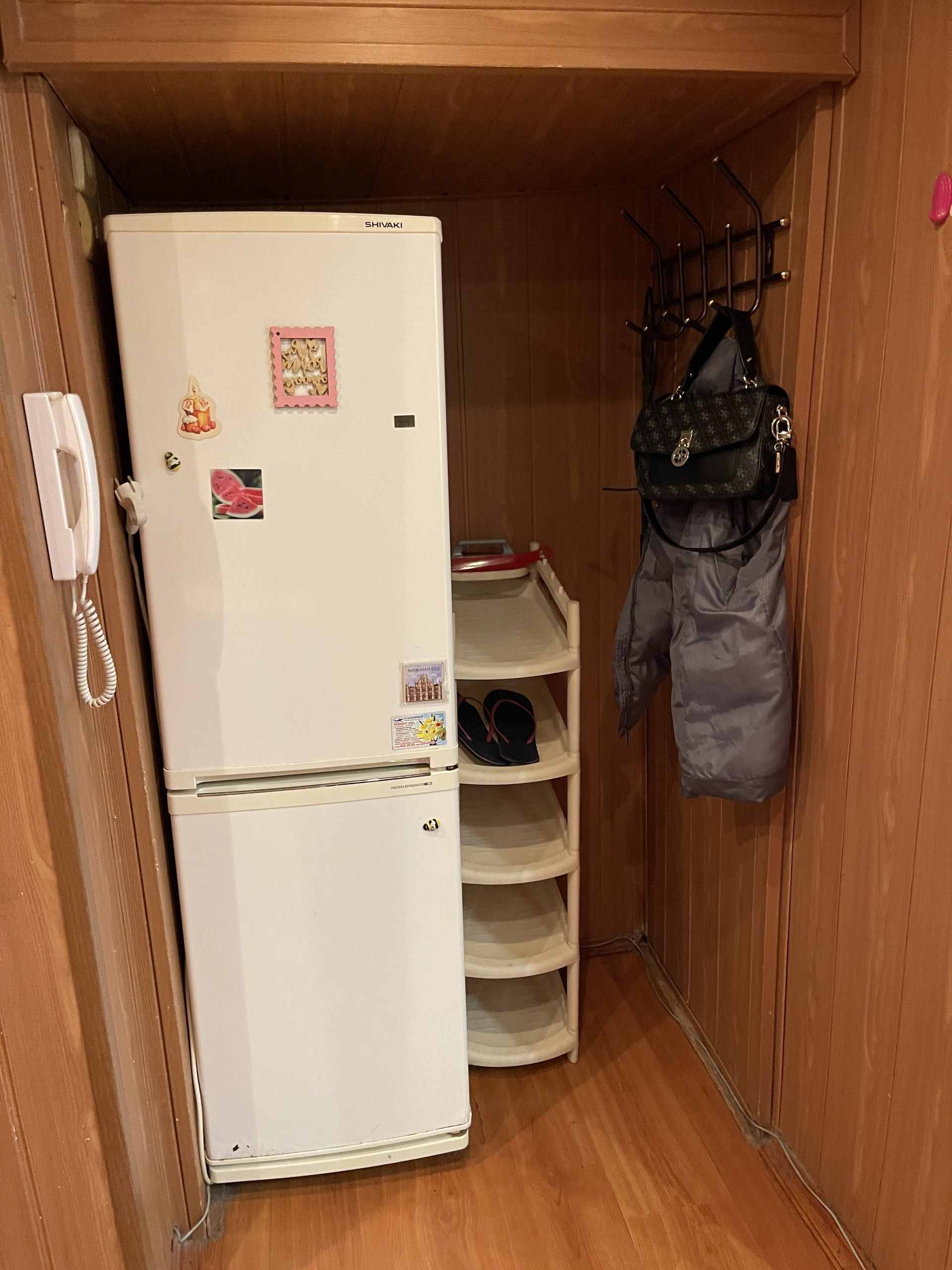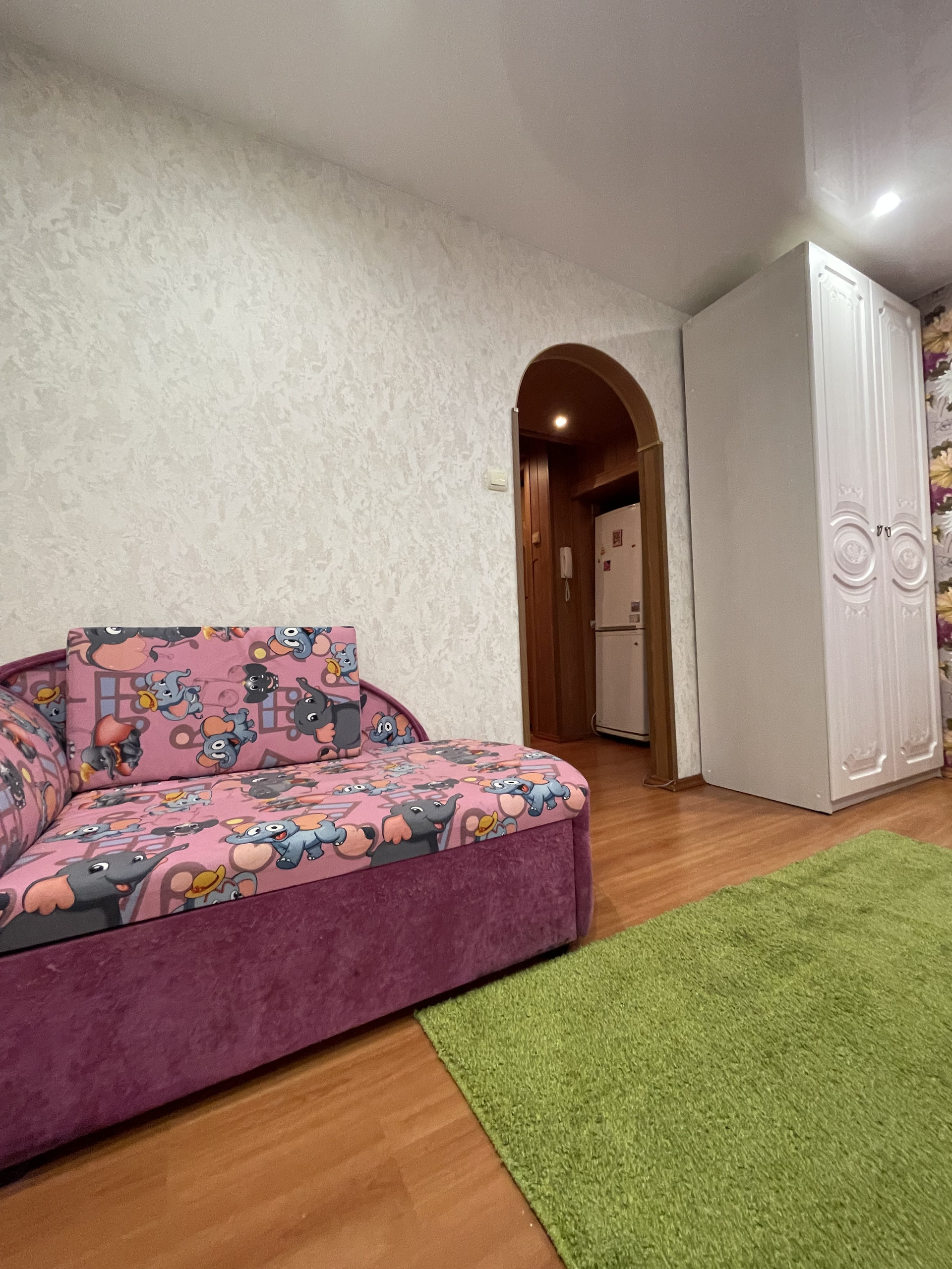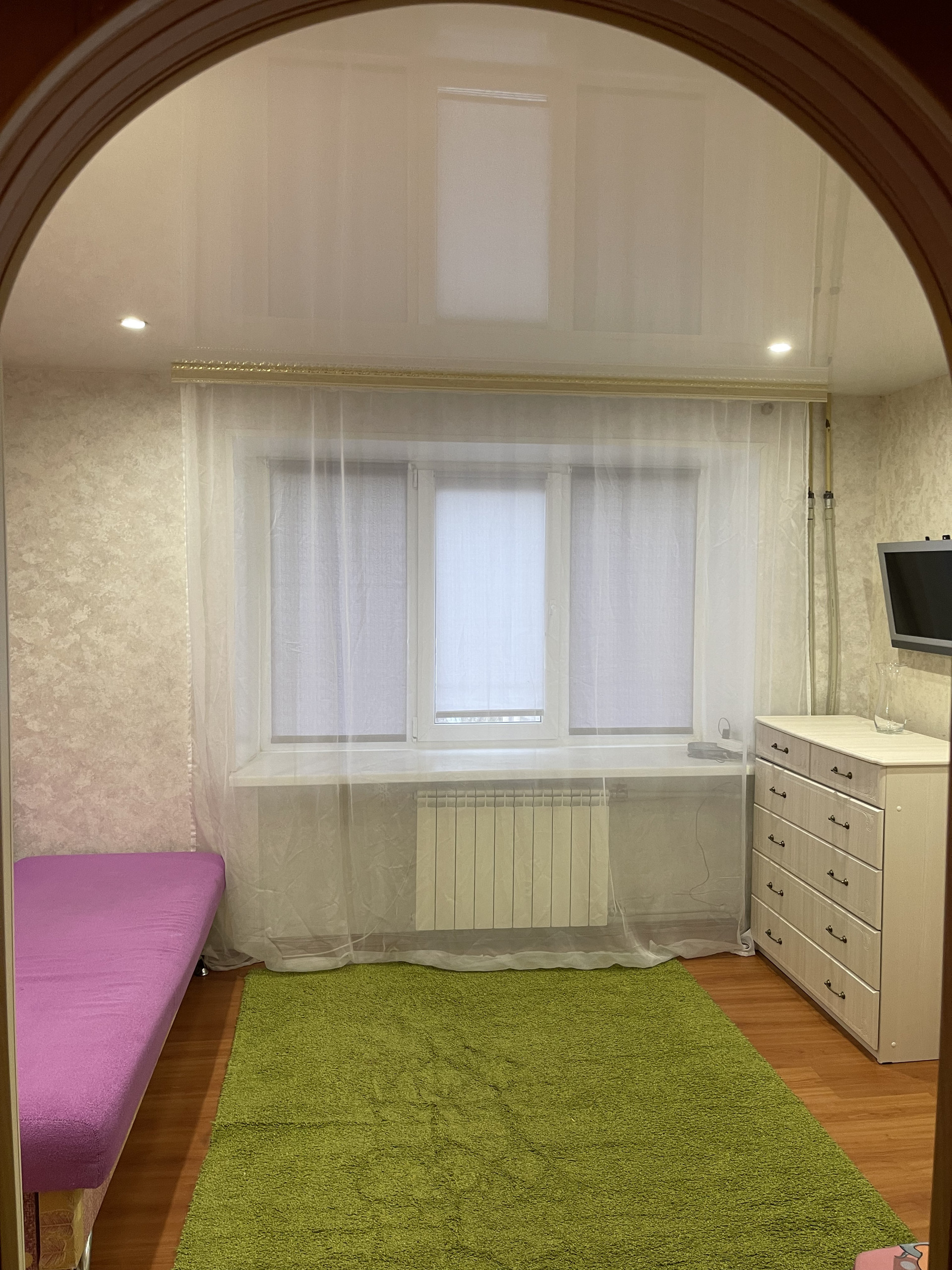 Стоит хорошая входная дверь с зеркалом, натяжные потолки, ремонт есть, заезжай и живи.