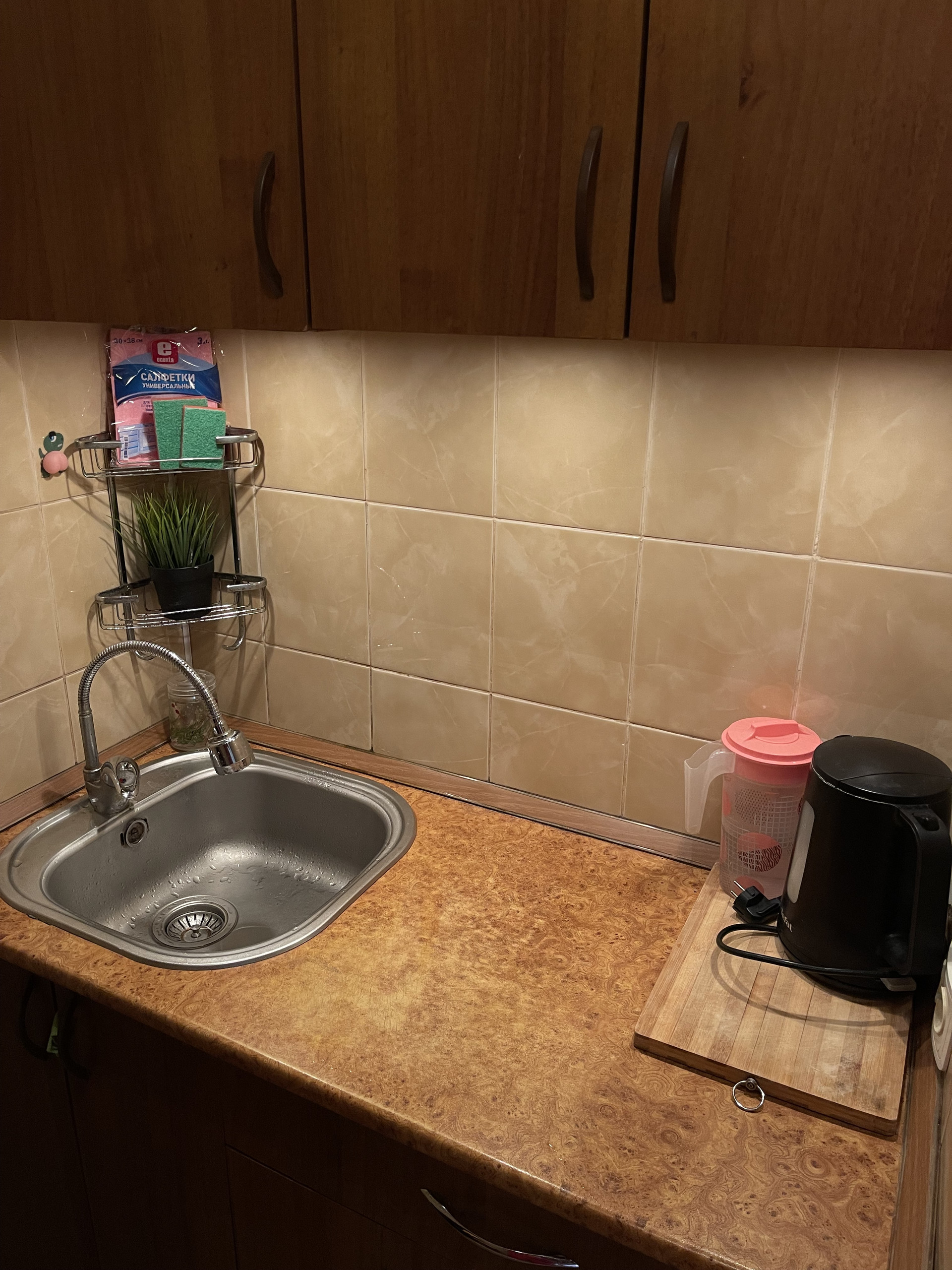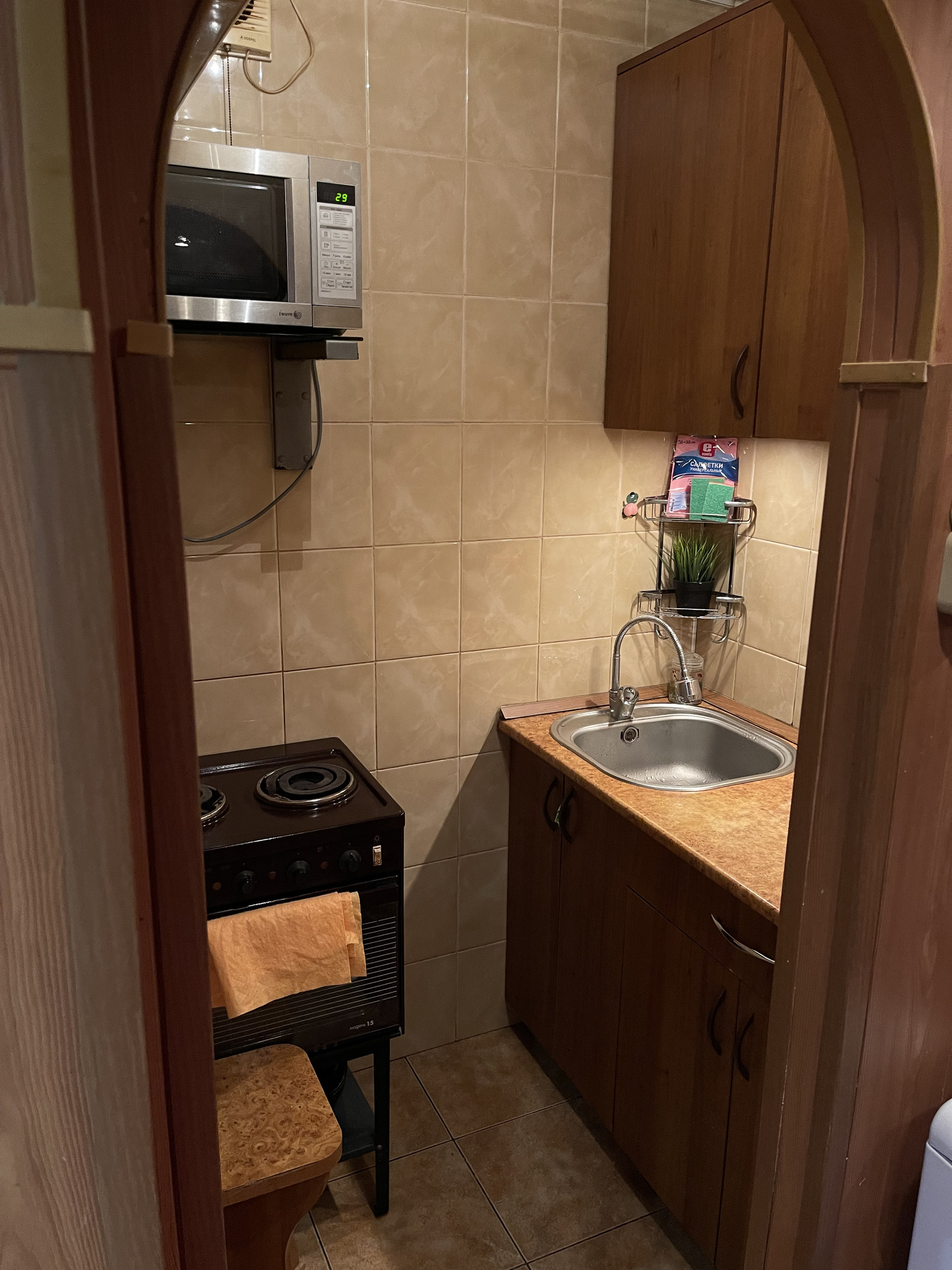 Есть своя маленькая кухня, но душ совмещенный с туалетом в прямом смысле, мыться вполне комфортно, т.к все рассчитано на это.