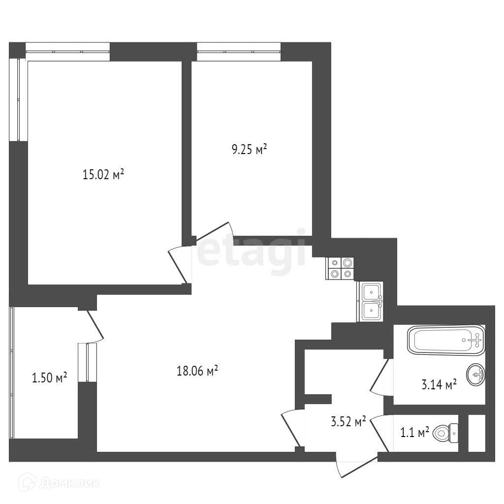 2-комнатная квартира, 55 м2, этаж 2 / 9, на продажу в Нижнем Новгороде, Казанское шоссе, 14к3