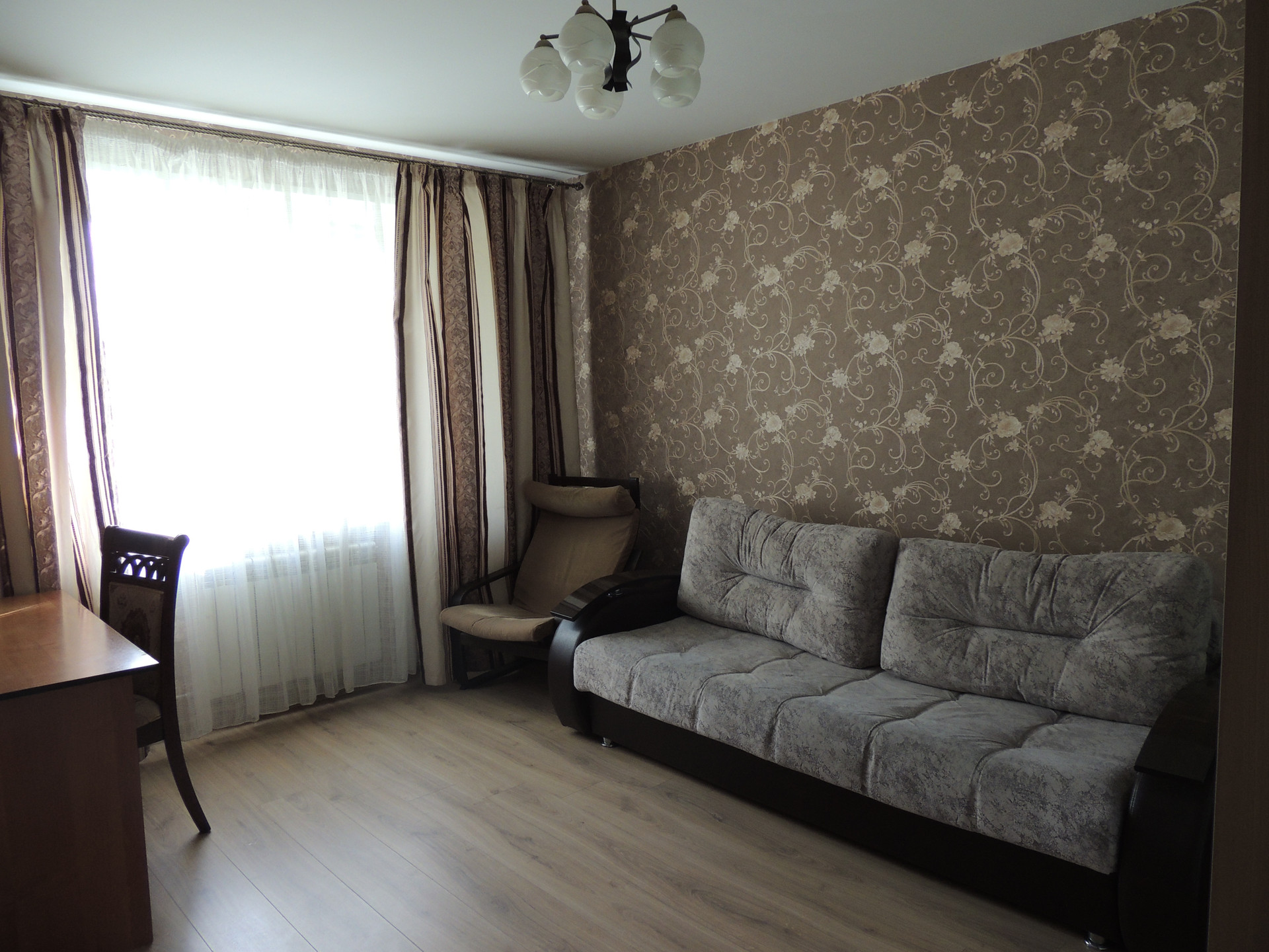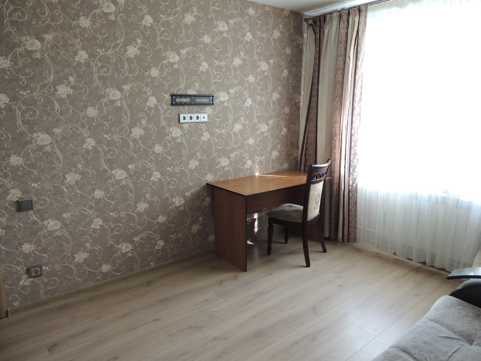 В квартире сделан качественный капитальный ремонт с заменой труб, батарей, сантехники, электрики. Розетки для удобства установлены в функциональных точках.