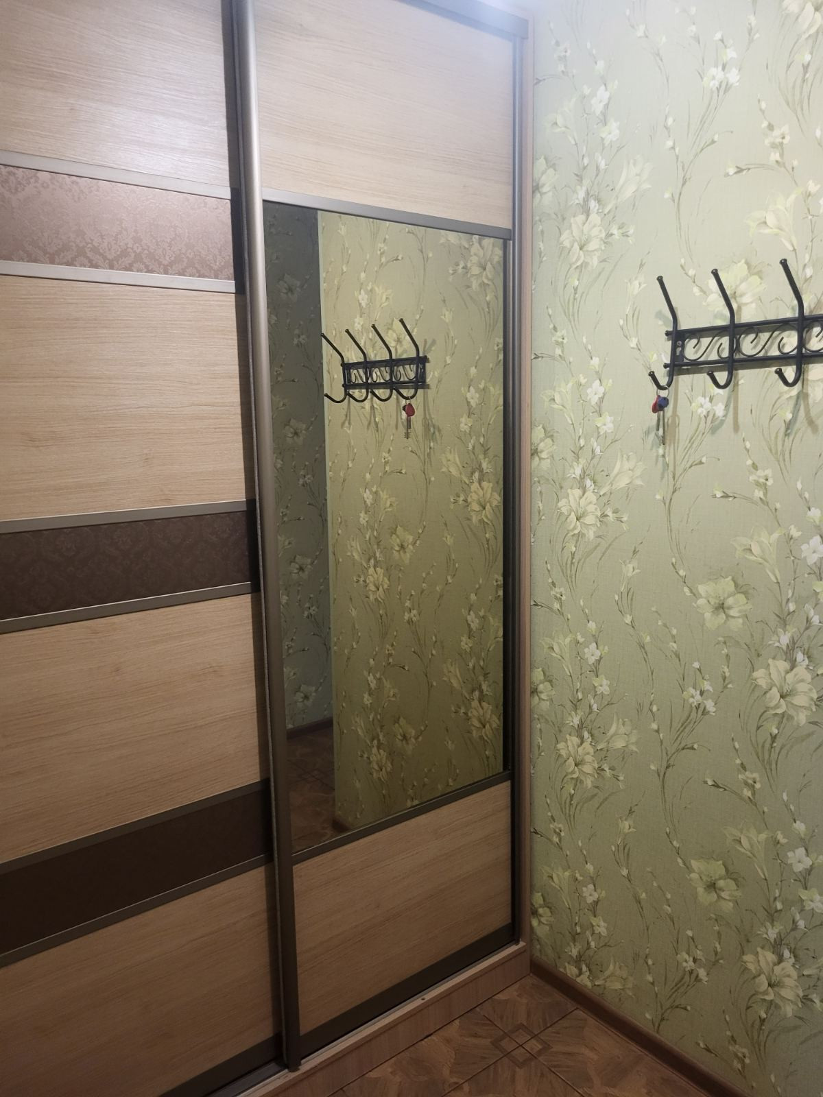 Шкаф-купе в прихожей и комнате, диван, двухспальная кровать, туалетный столик.