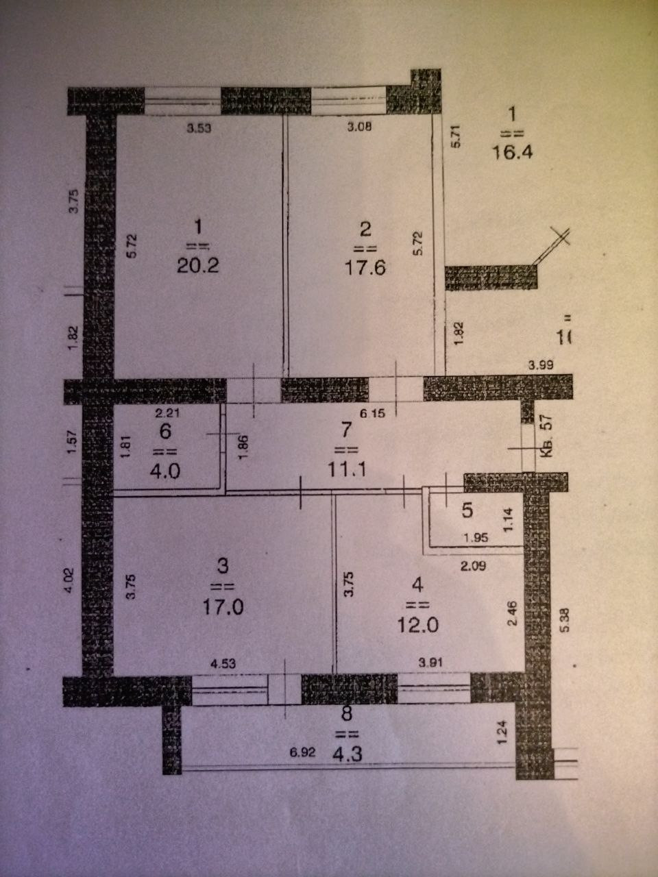 Жилая площадь 54.8 м2