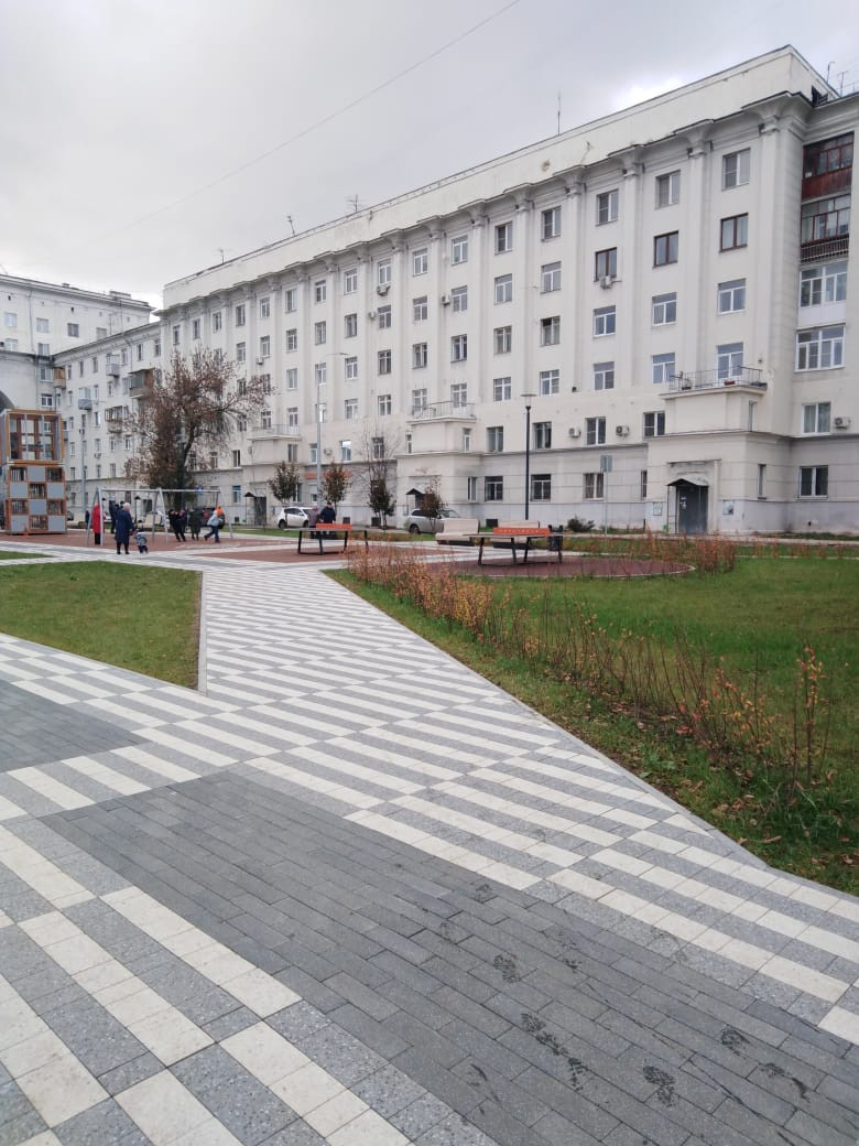 • Красивейшая придомовая территория: сквер, дорожки, скамейки, детские и спортивные площадки;