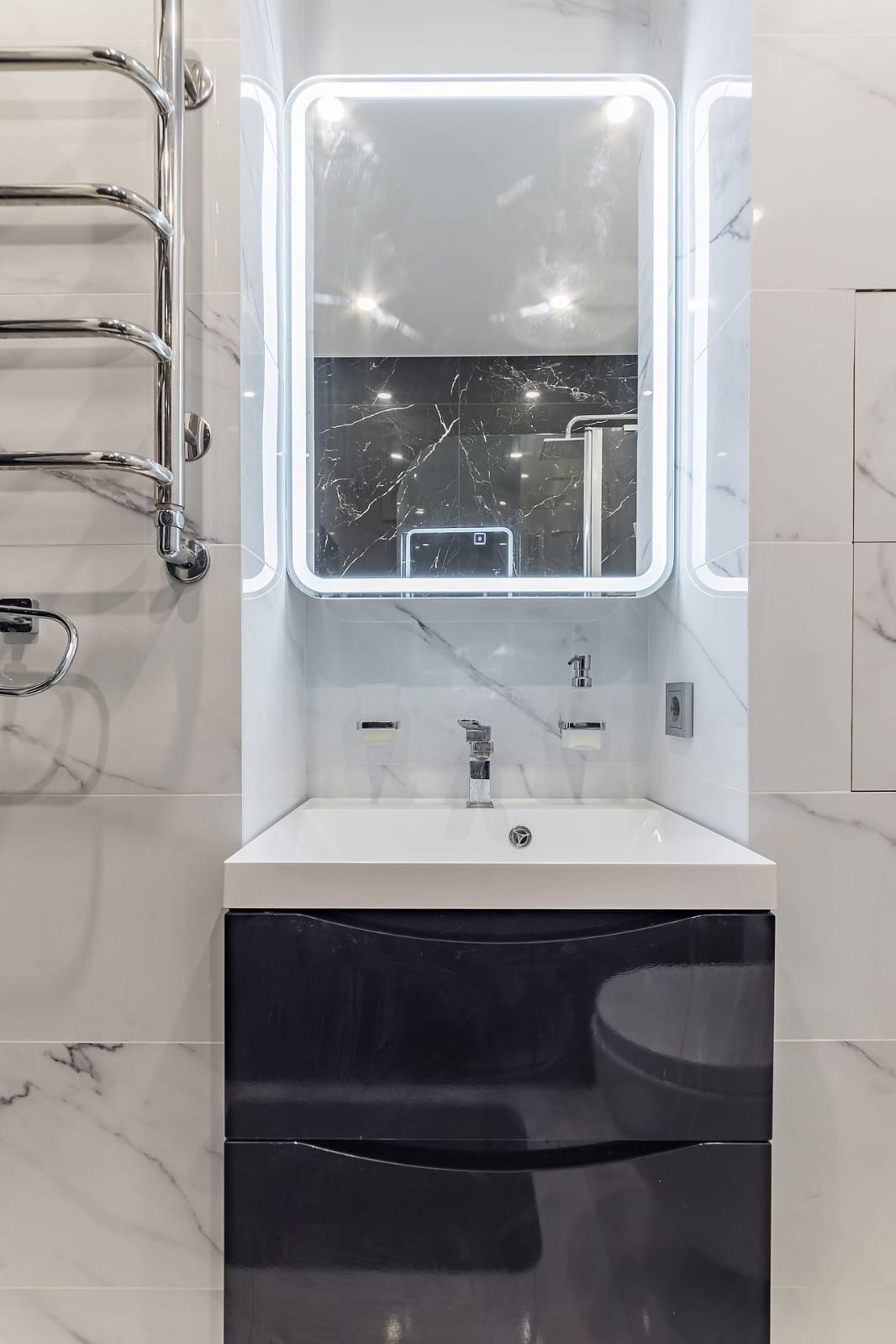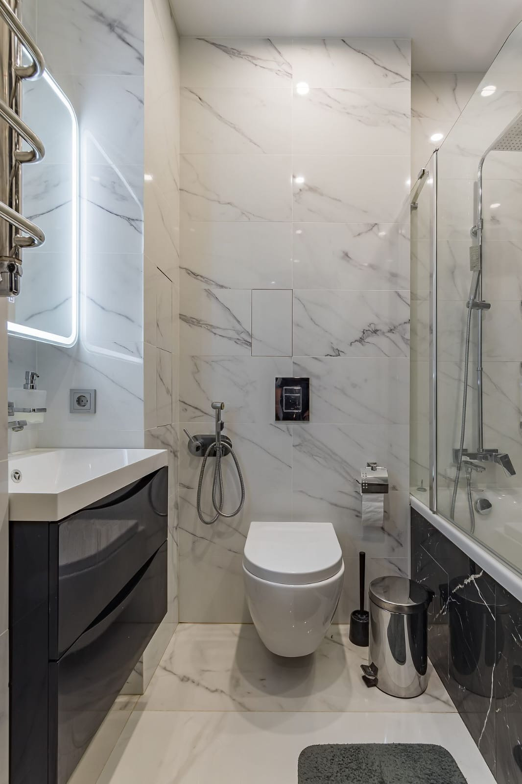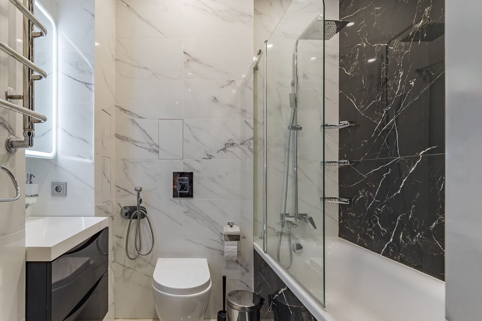 Санузел полностью оборудован сантехникой,  мебелью и аксессуарами.