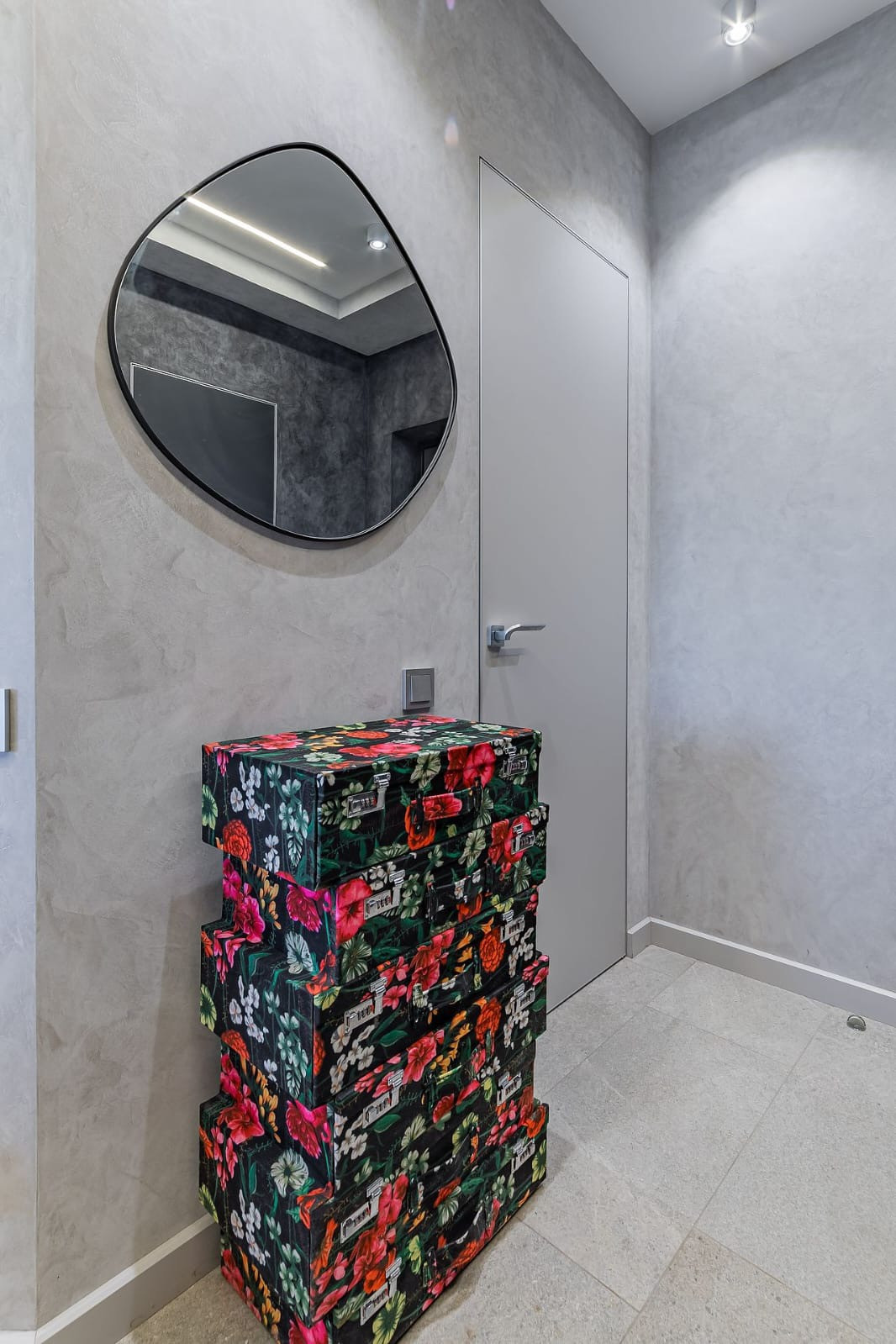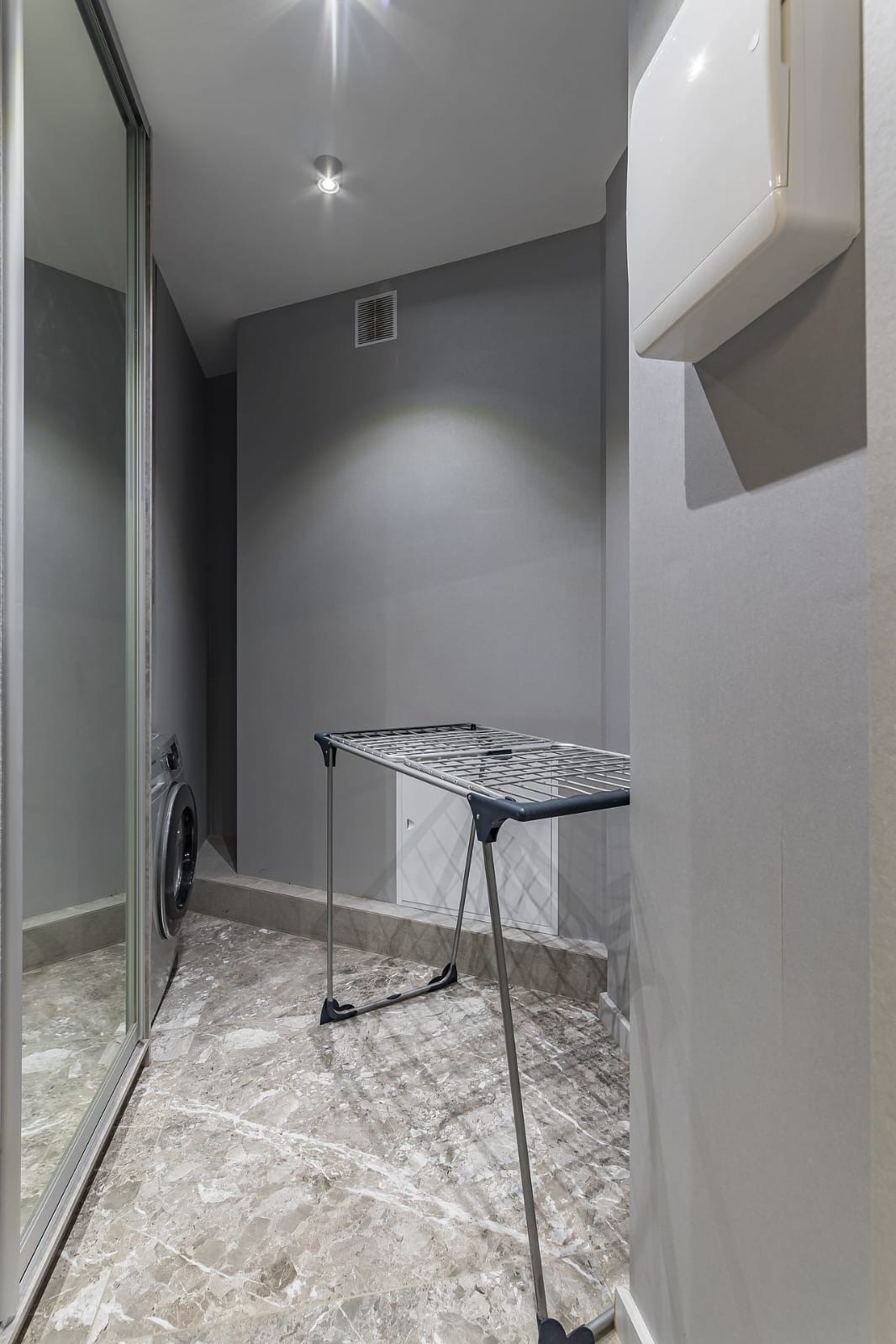 В квартире проведена перепланировка - новые перегородки из газосиликатного кирпича.  Благодаря перепланировке получилось сделать гардеробную - постирочную.