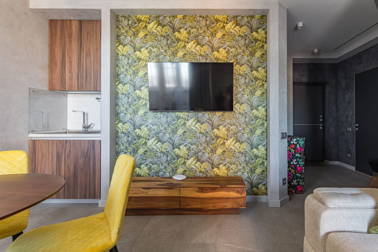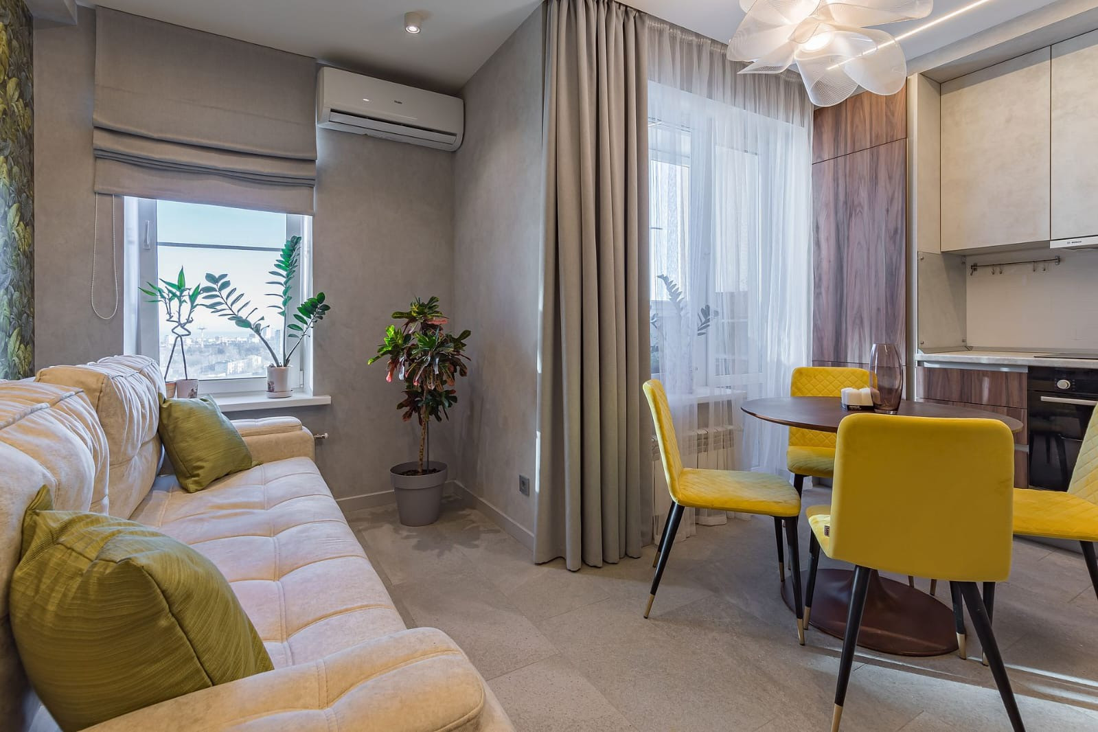 В гостиной установлен бесшумный кондиционер фабрики Haier.