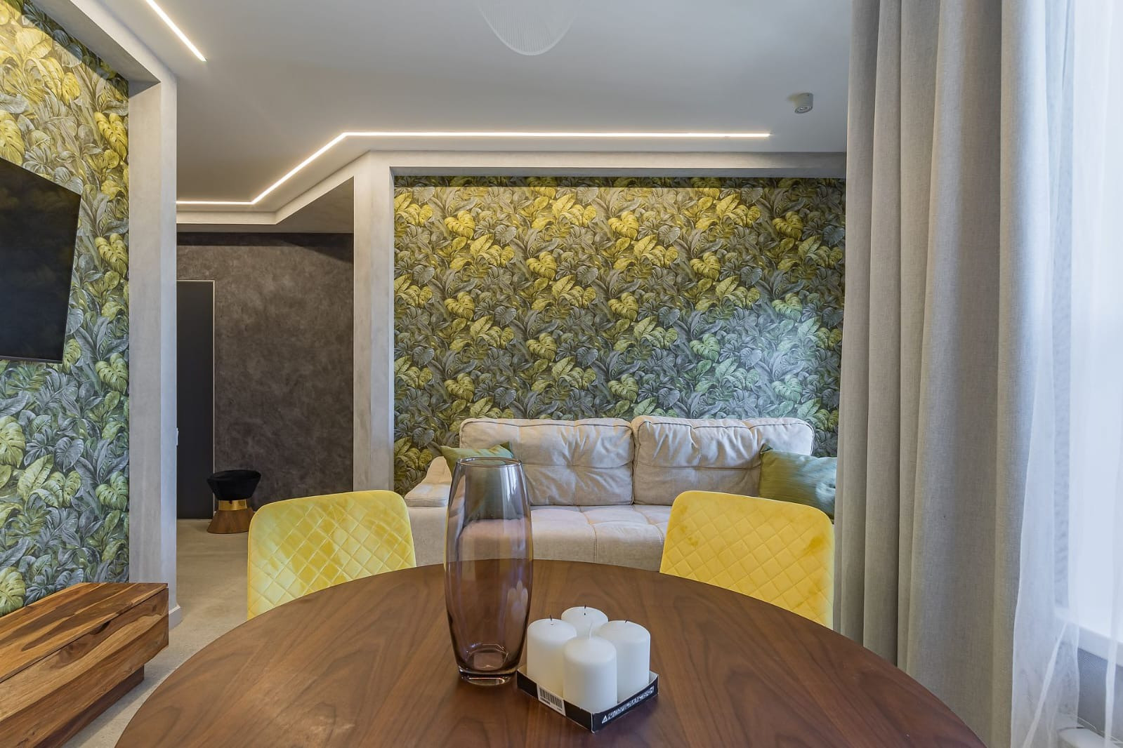 Люстра в гостиной фабрики SLamp Италия. Шторы блэкаут Бельгия.