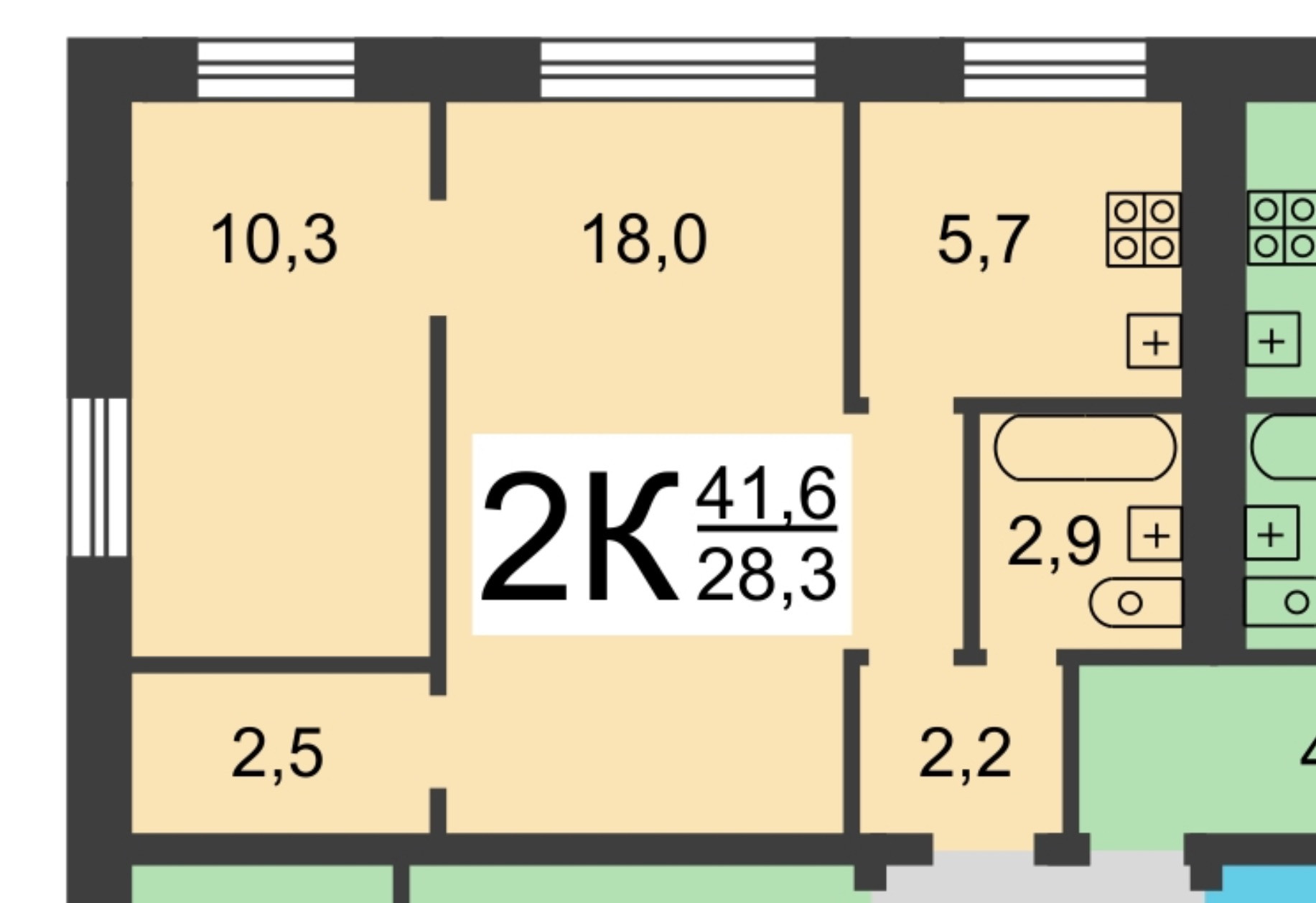 Общая площадь 41.6 м2
