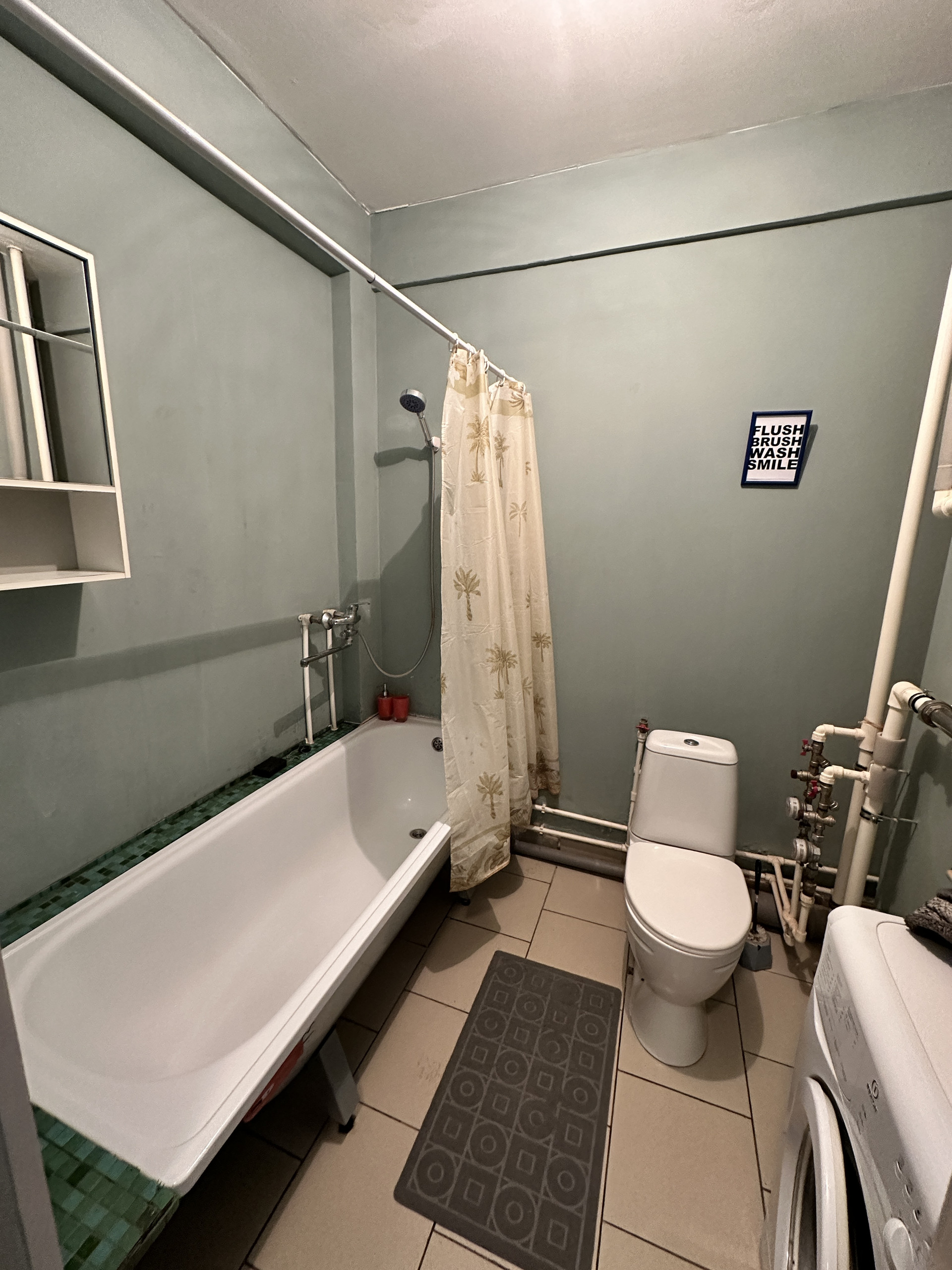 - совмещенный санузел (здесь полноценная ванная, а не душевой поддон!)
