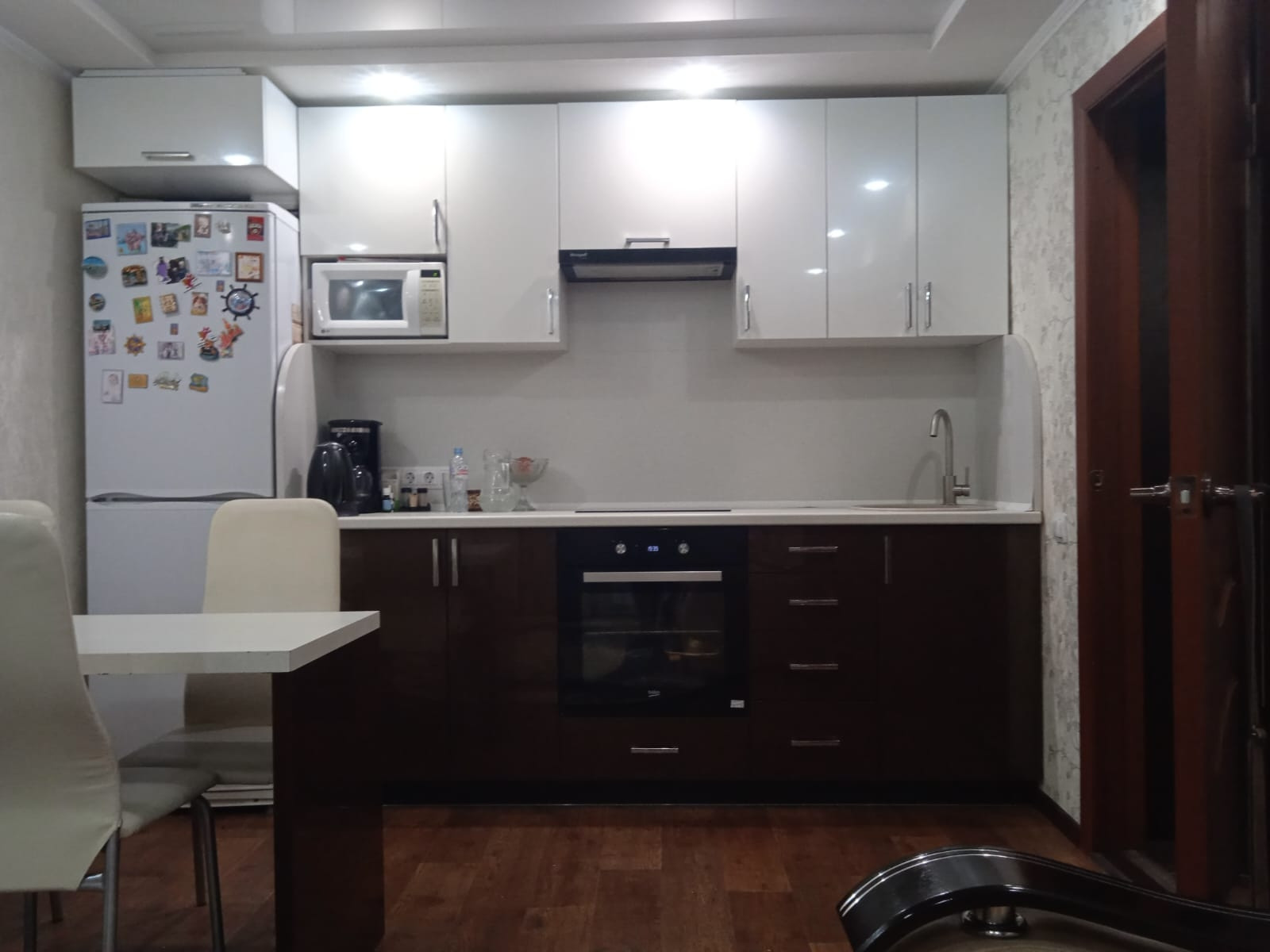 Новым владельцам остаётся кухонный гарнитур и шкаф.