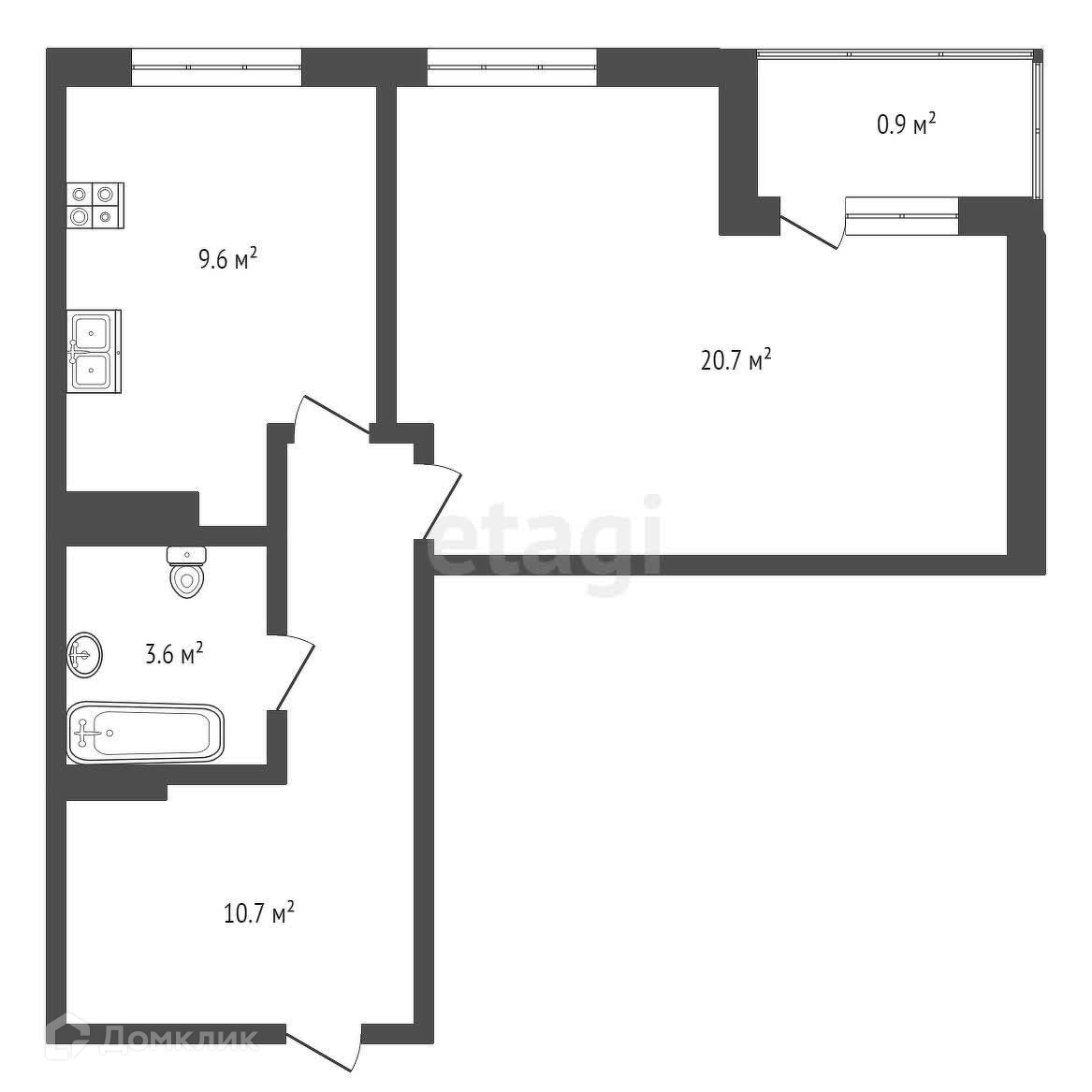 Общая площадь 45.6 м2