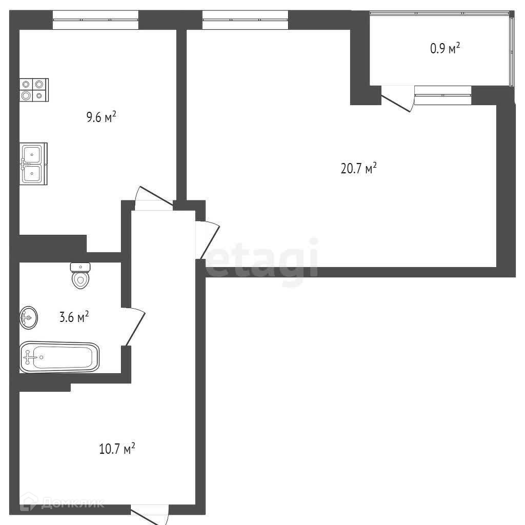 Балкон, лоджия 1 балкон