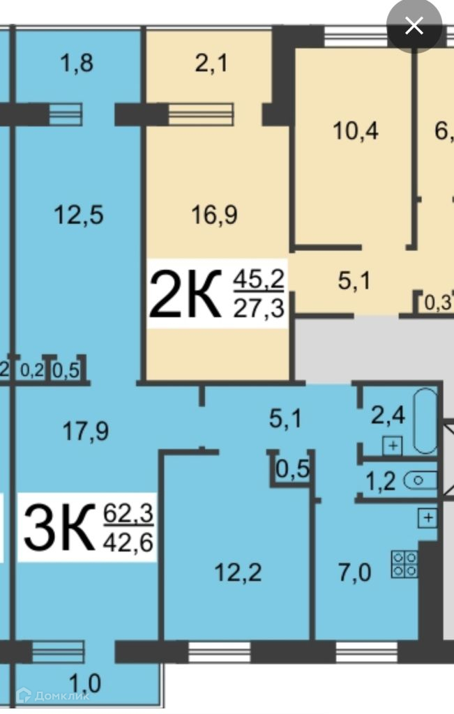 Общая площадь 60.6 м2