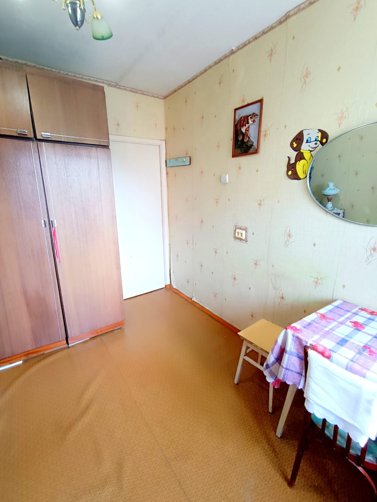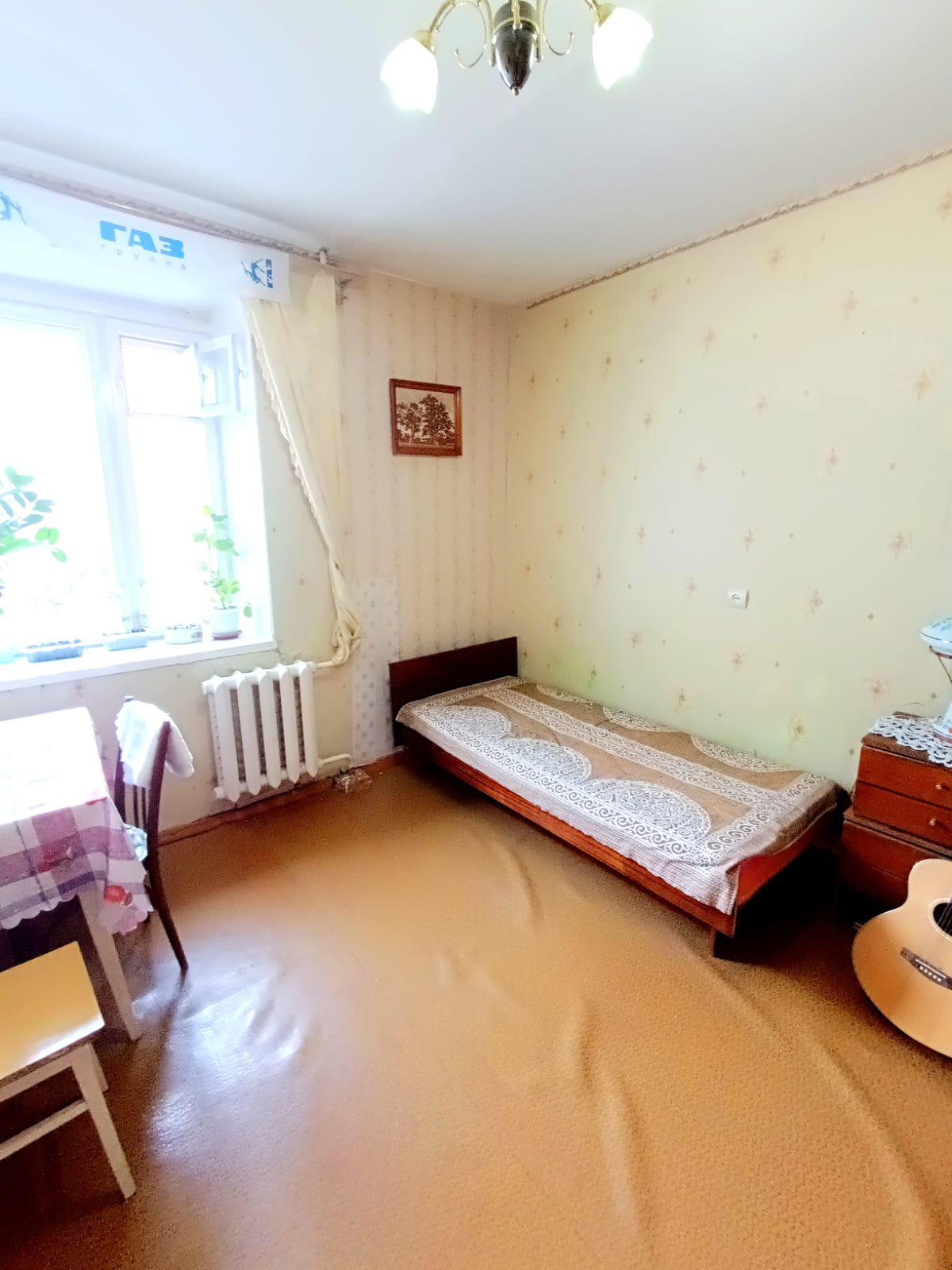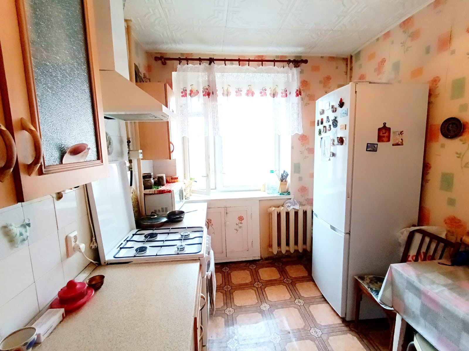 Квартира в хорошем состоянии. Все комнаты изолированные.Заменена дверь в зал. Плитка на стенах и на полу в ванной. Поменены трубы, установлены счетчики на воду. Балкон застеклен пластиком. Кухонный гарнитур остается. Можем также оставить мебель по договоренности.