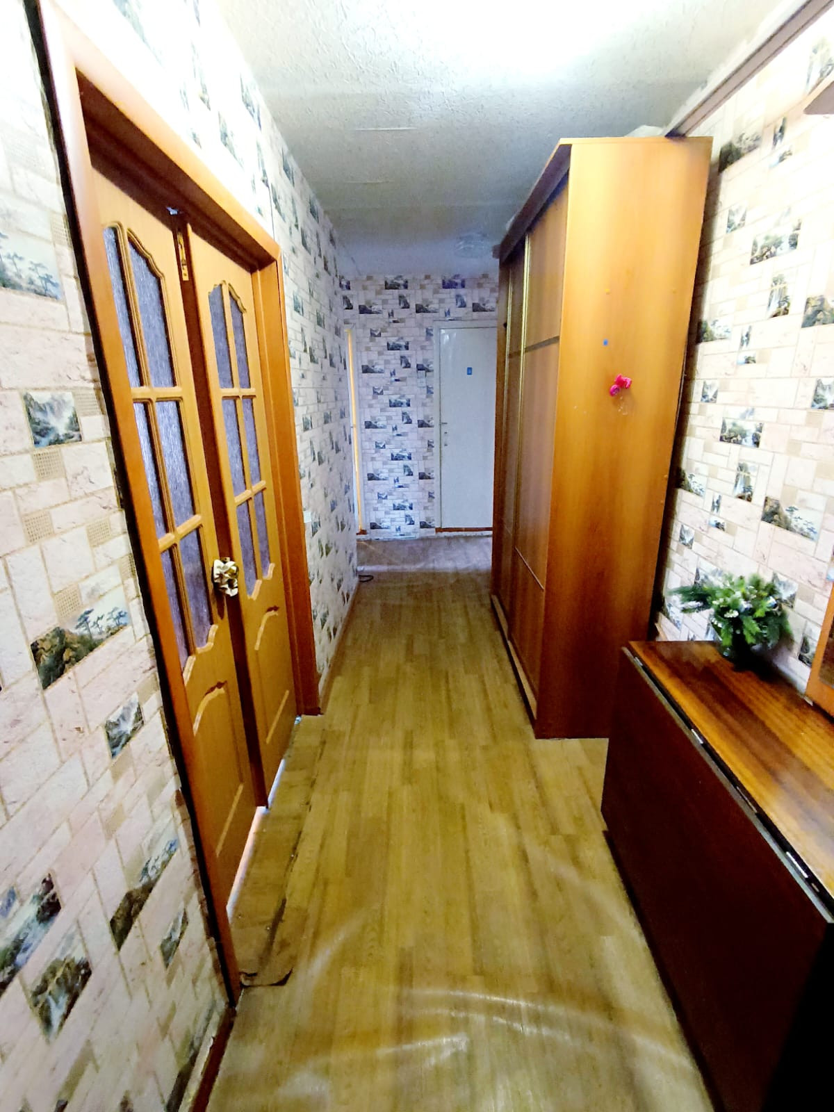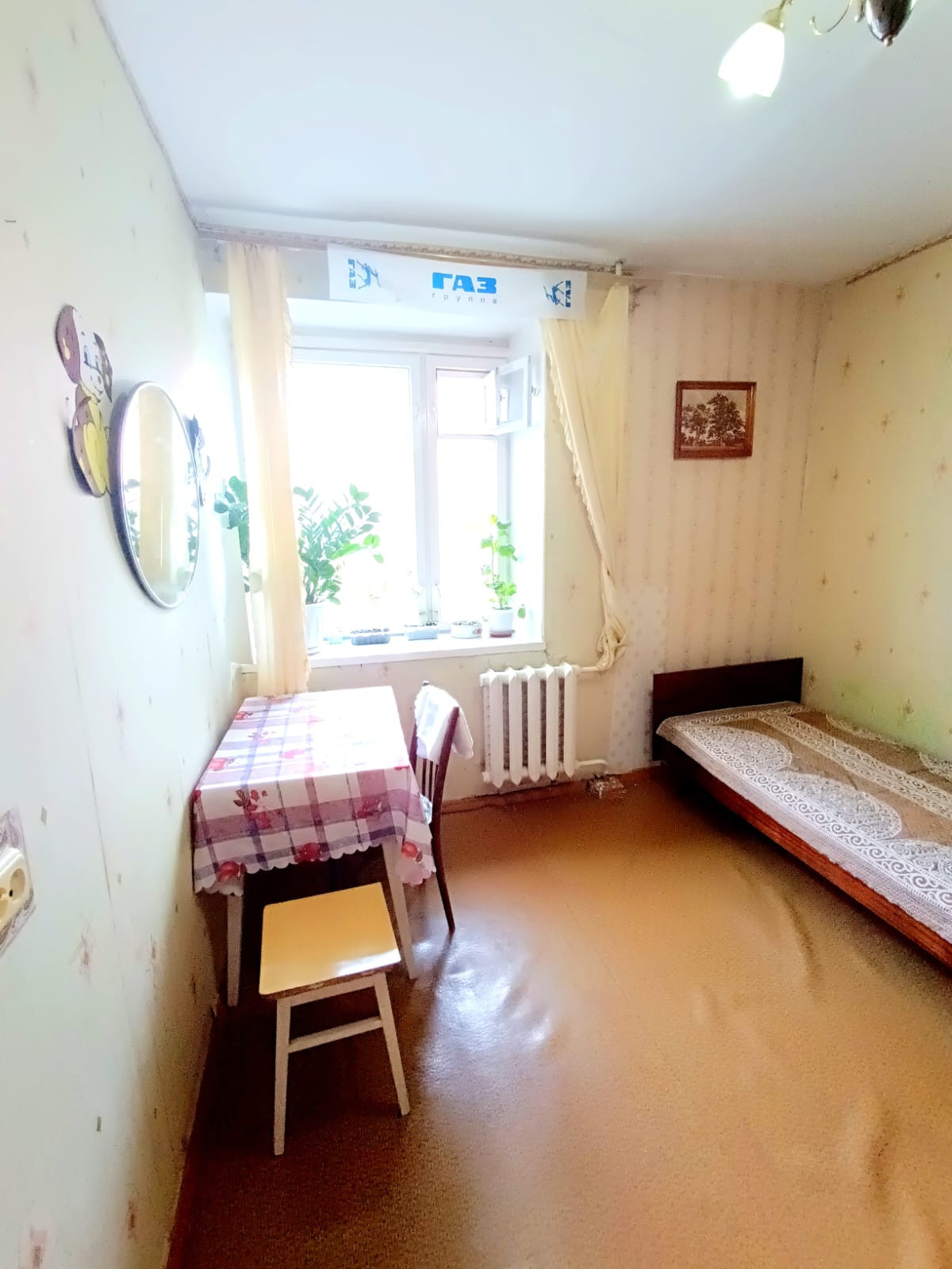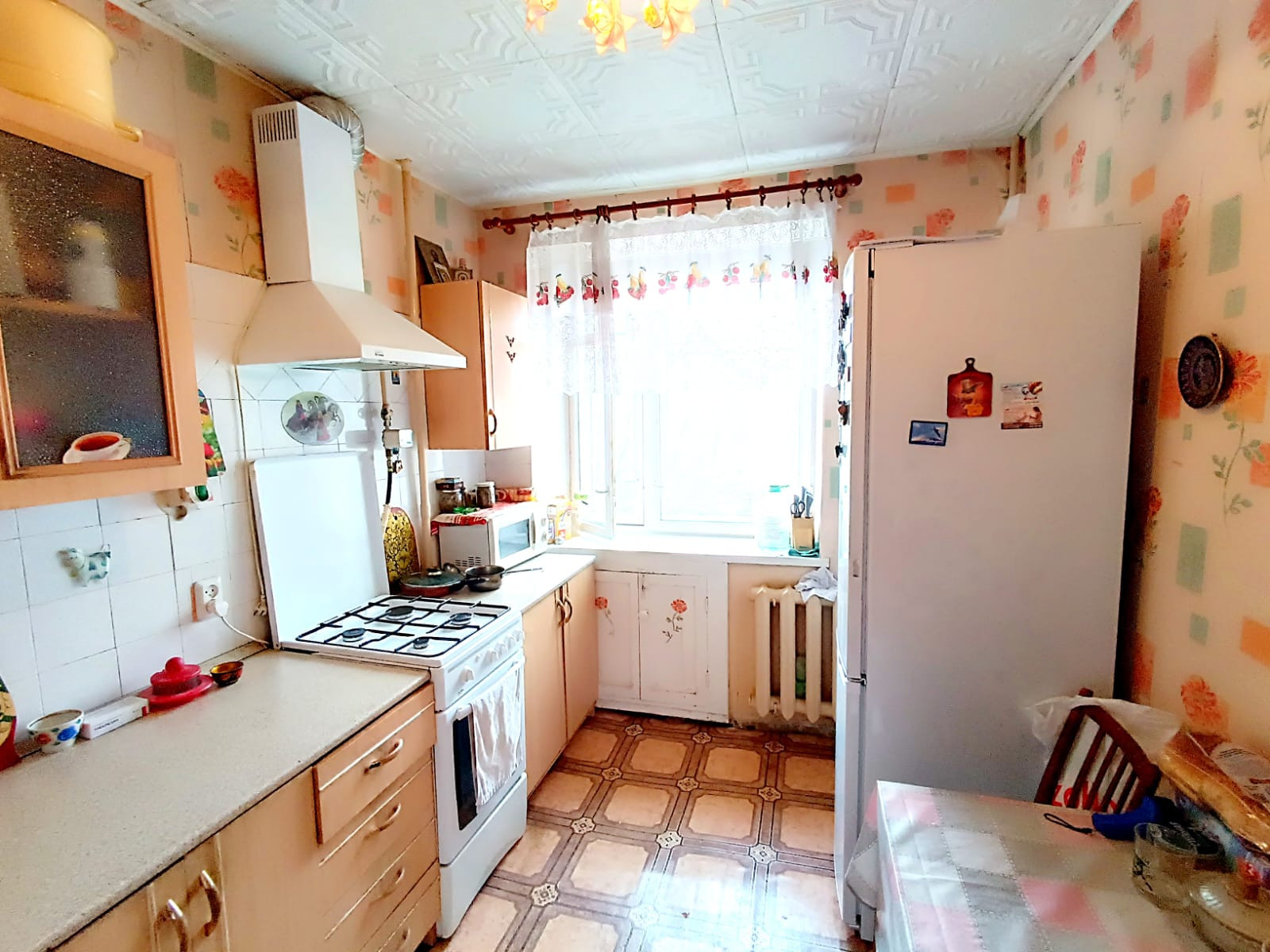 Квартира в хорошем состоянии. Все комнаты изолированные.Заменена дверь в зал. Плитка на стенах и на полу в ванной. Поменены трубы, установлены счетчики на воду. Балкон застеклен пластиком. Кухонный гарнитур остается. Можем также оставить мебель по договоренности.