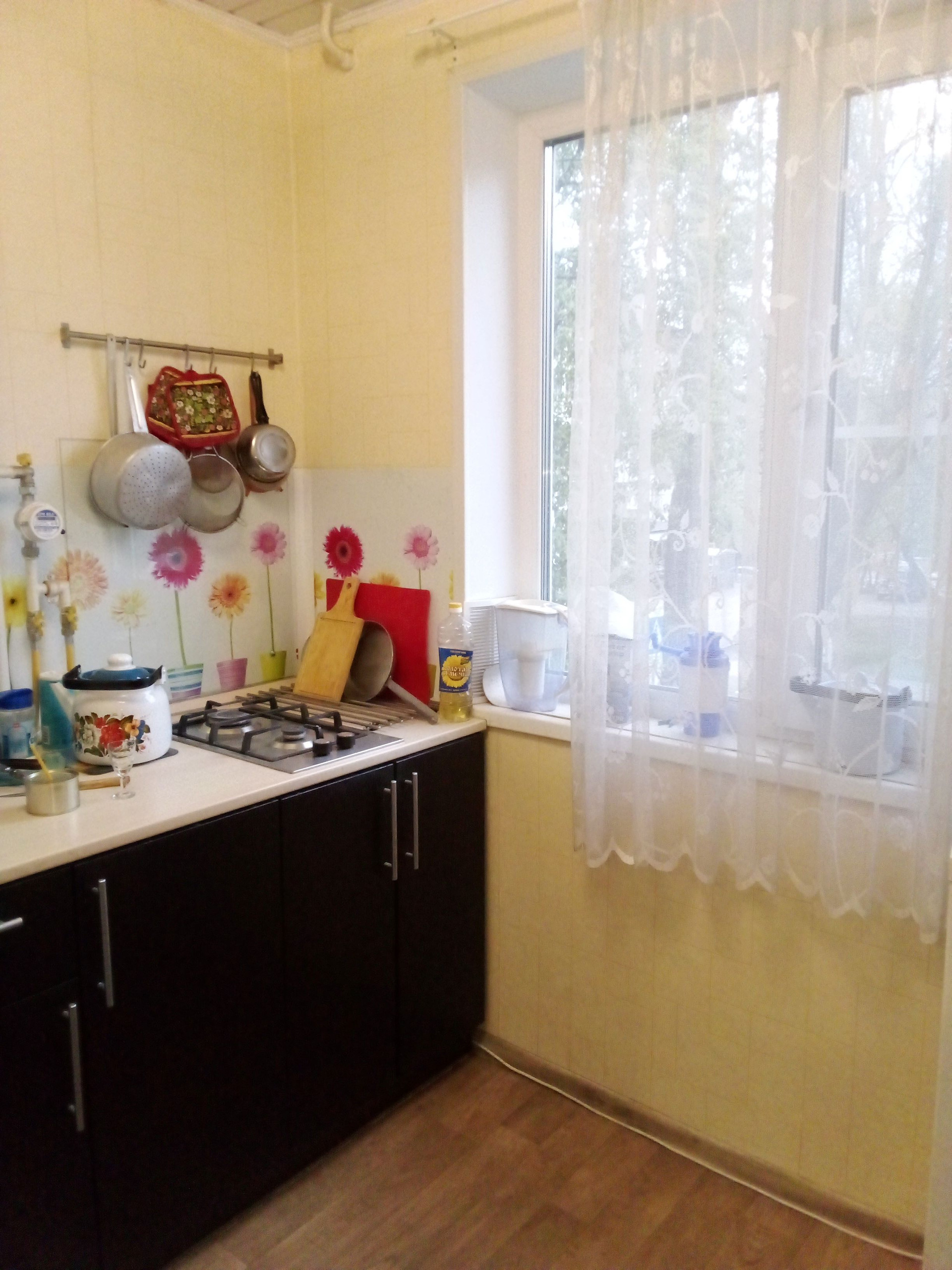 Кухня встроенная остается.