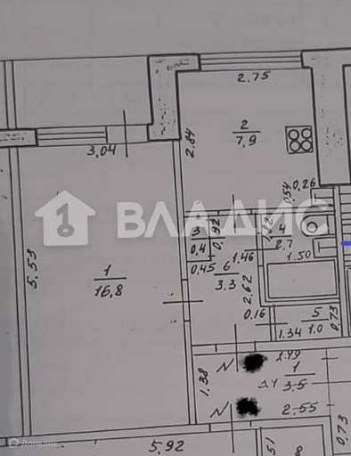 Жилая площадь 16.8 м2