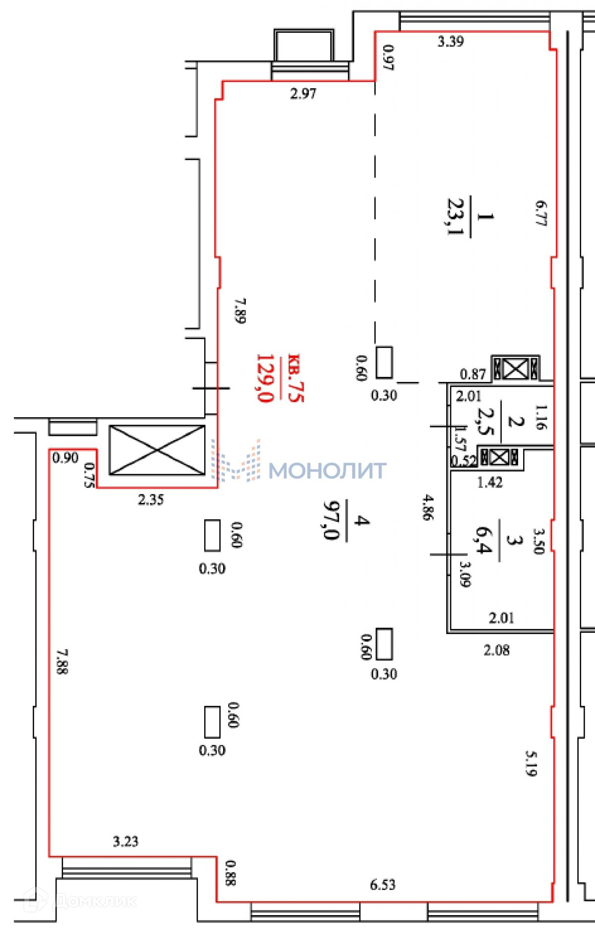 Жилая площадь 97 м2