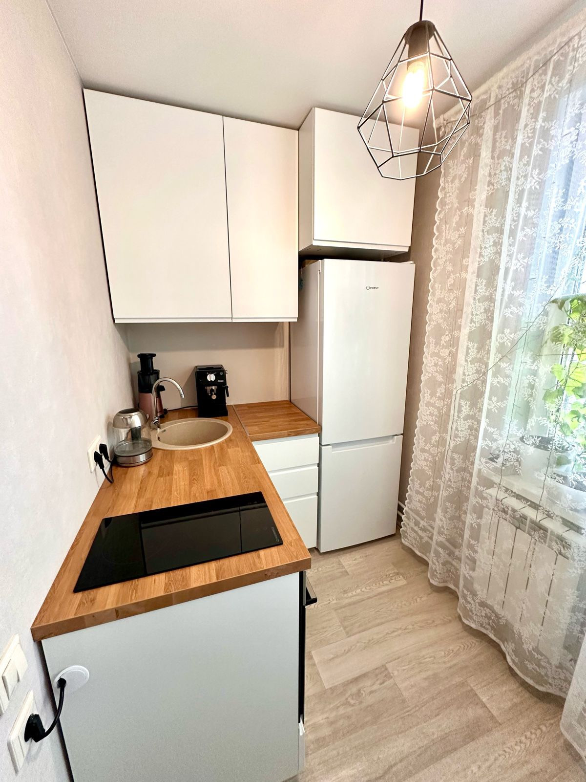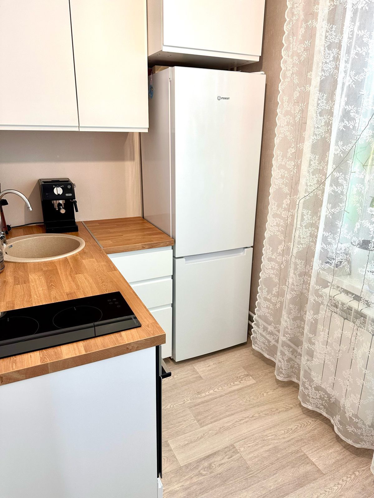 Отличная светлая квартира 29,4 кв.м. с высокими потолками. Санузел совмещенный, в квартире хороший ремонт в светлых тонах. В квартире остается кухонный гарнитур, варочная панель, духовой шкаф, шкаф-купе в прихожей.