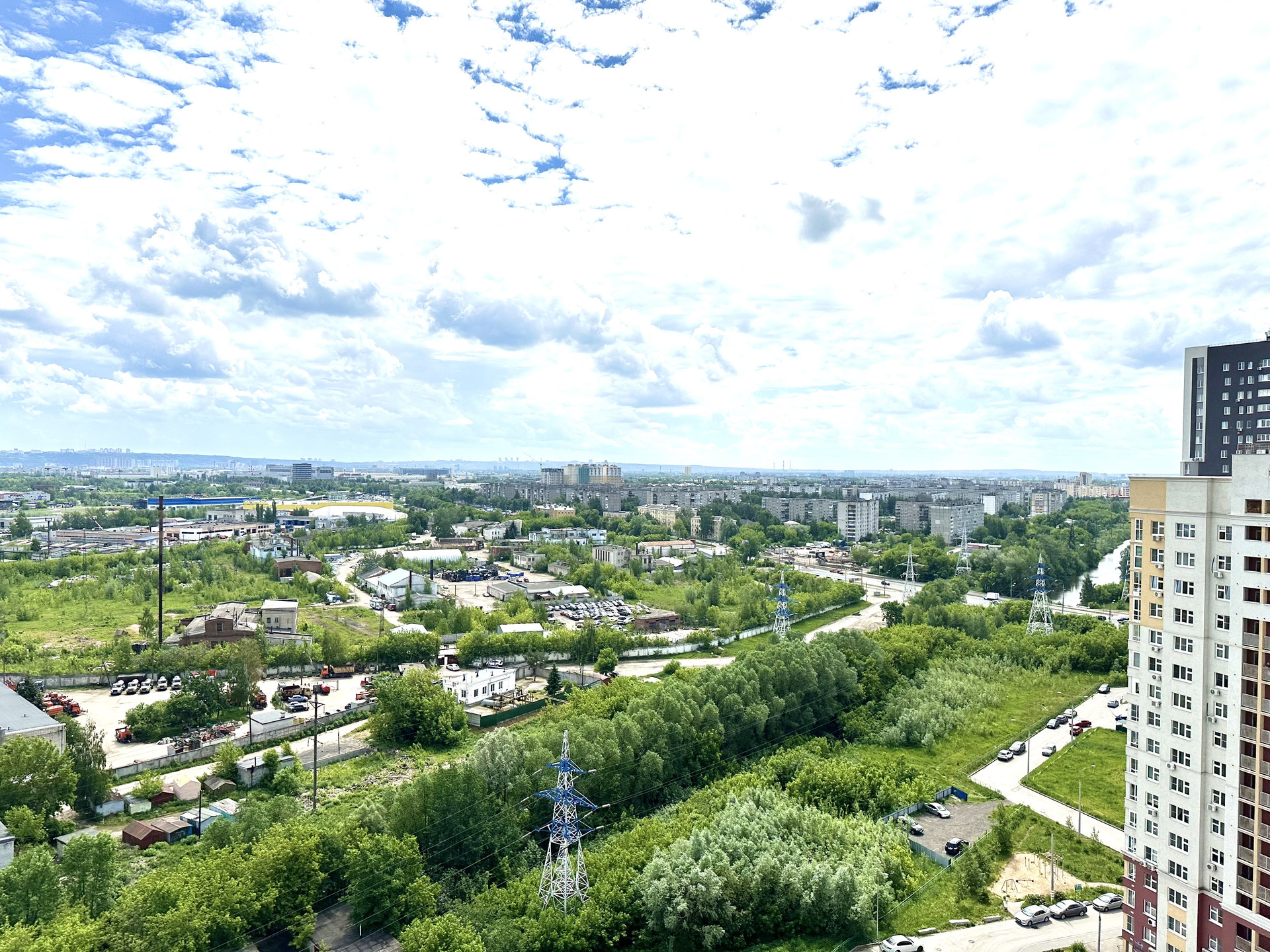 Живописный вид из окон, высокий этаж, простор.