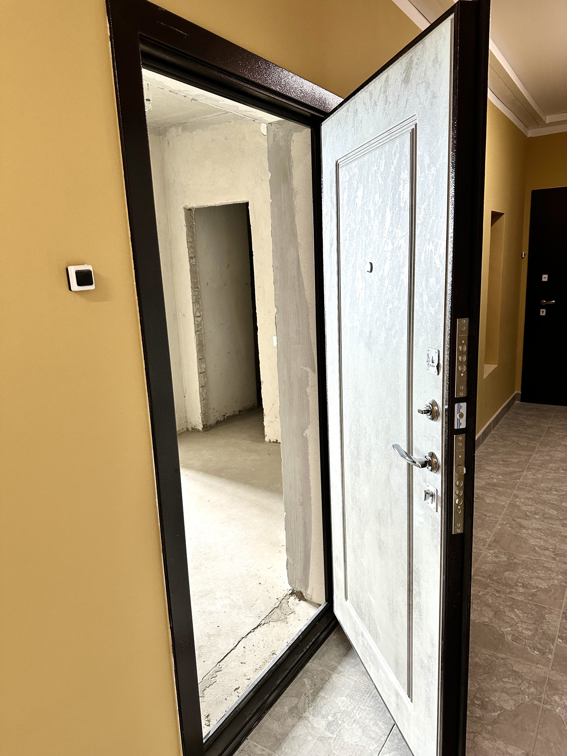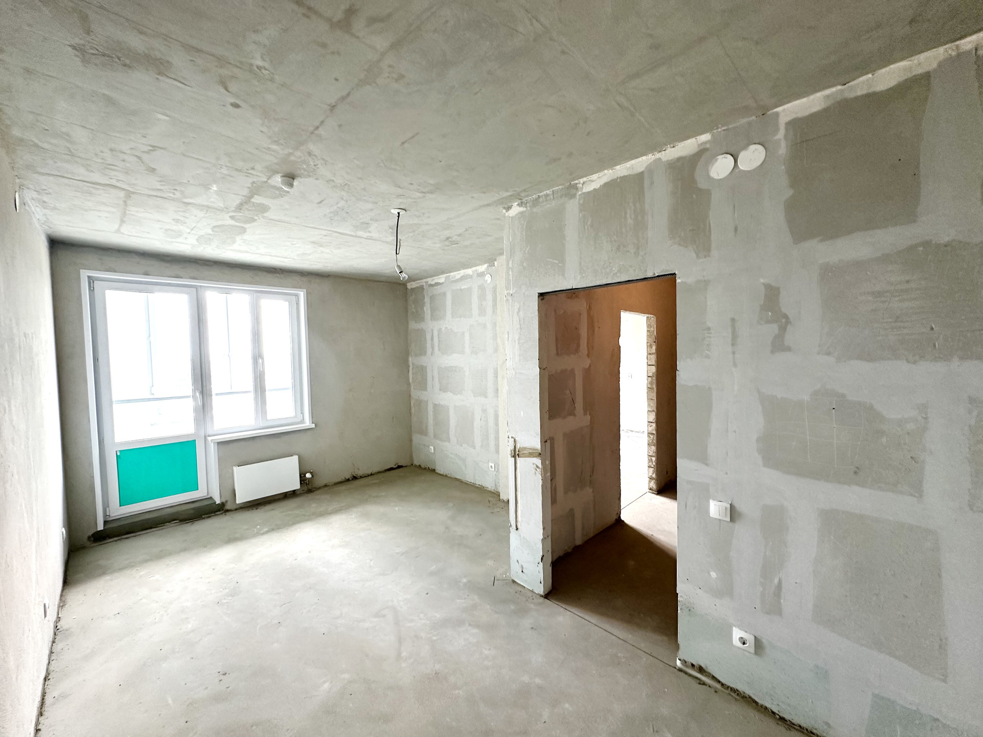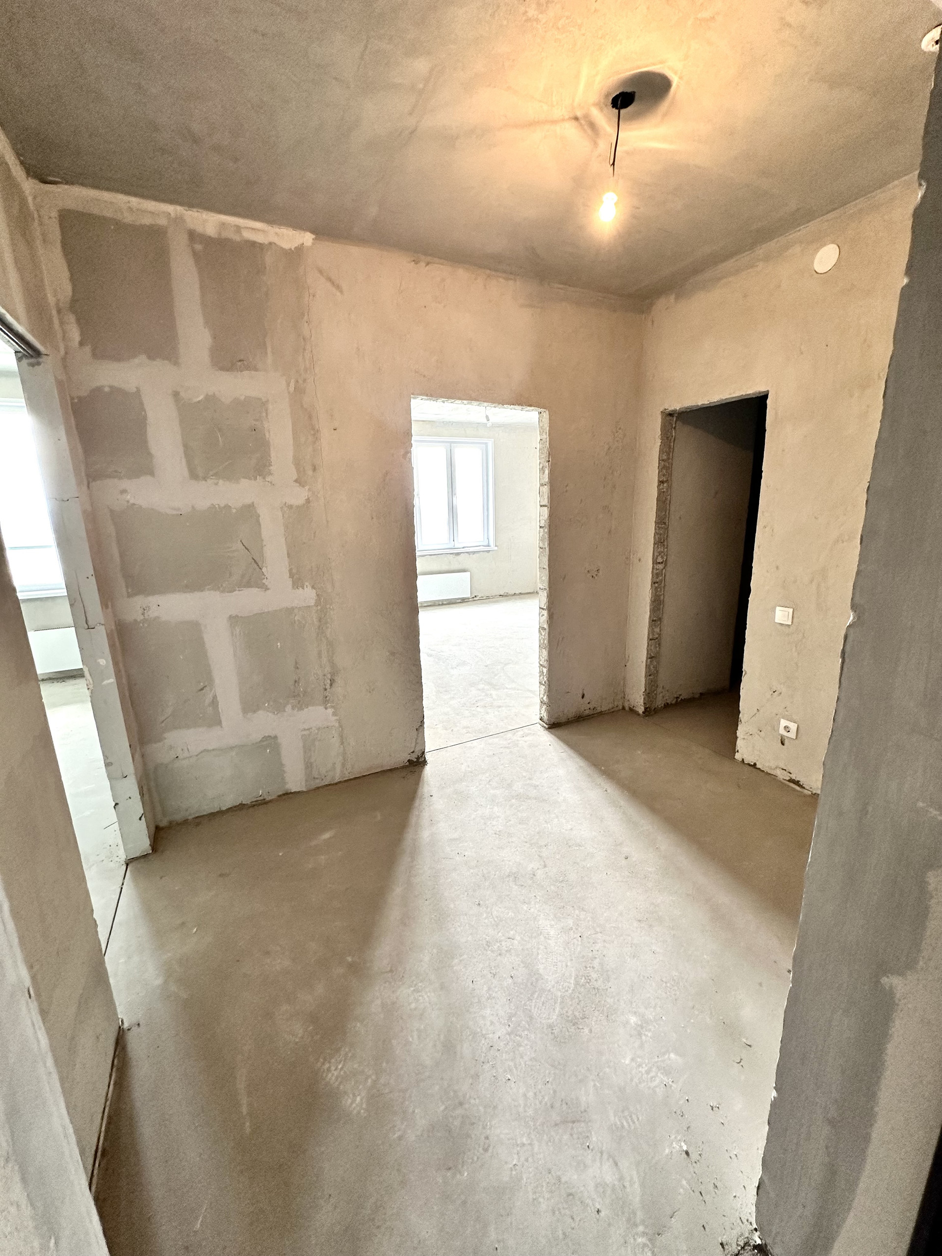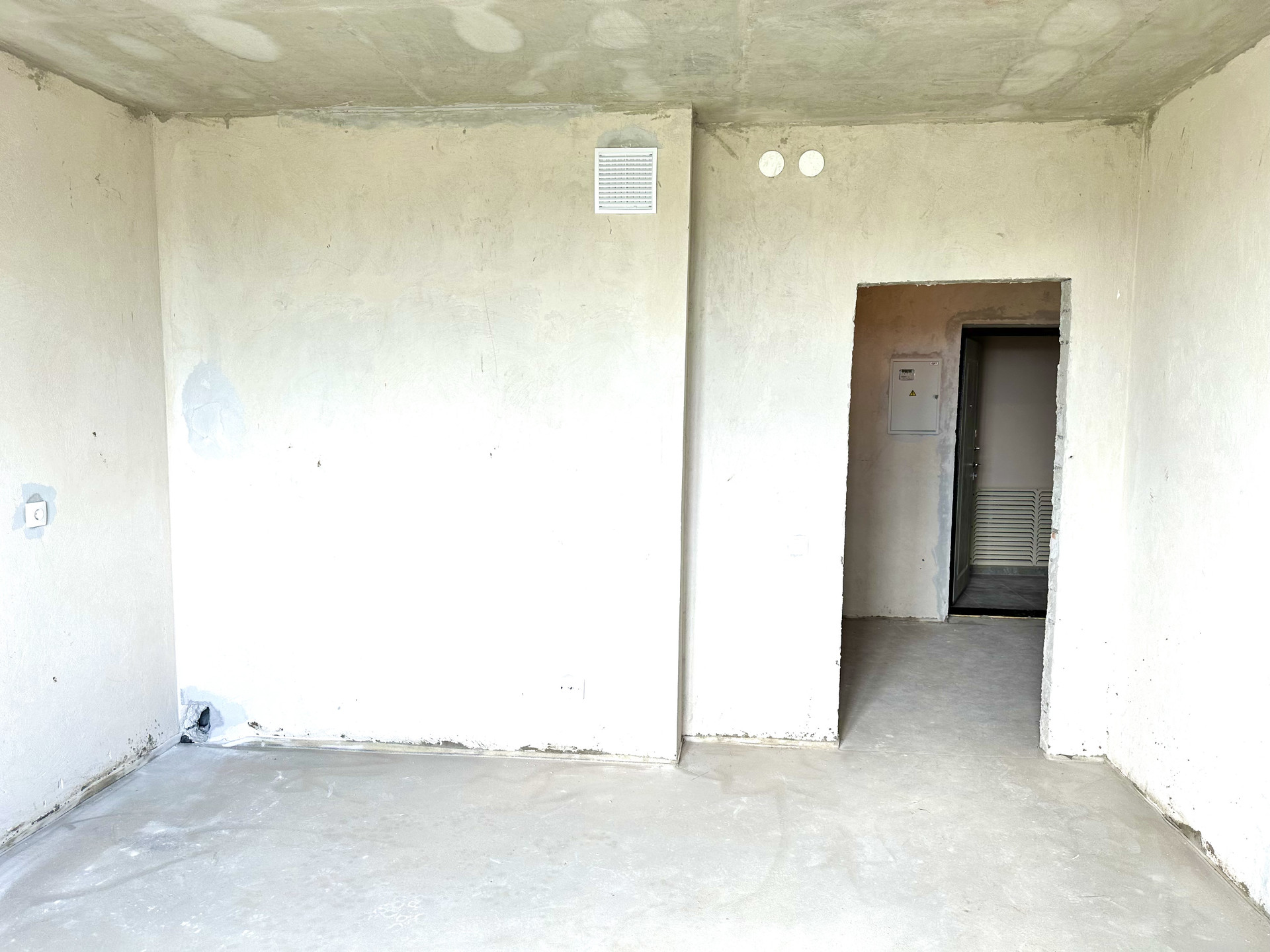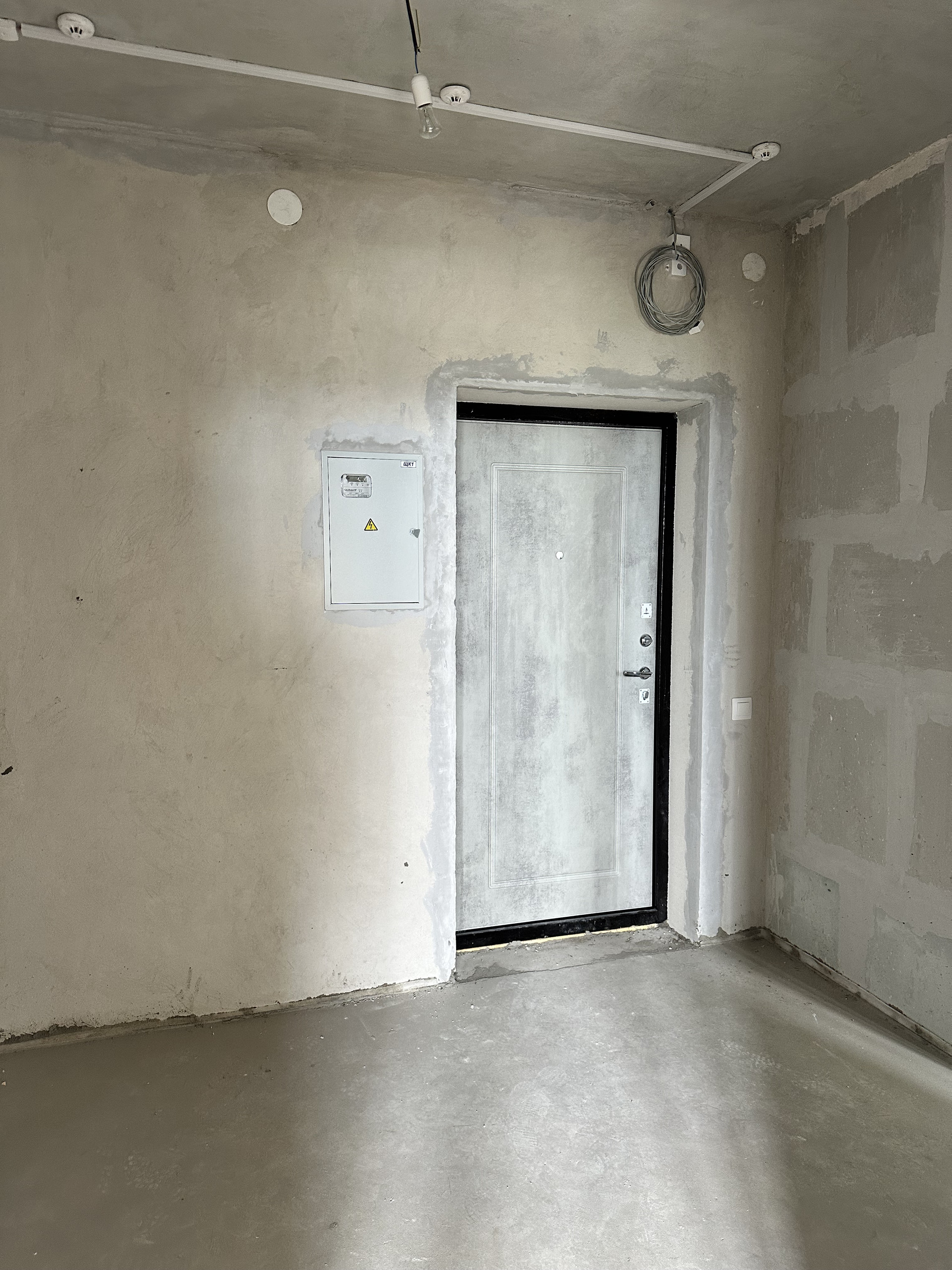 с качественной чистовой отделкой: выполнена стяжка пола и сделана электроразводка, установлены розетки и выключатели, металлическая входная дверь.