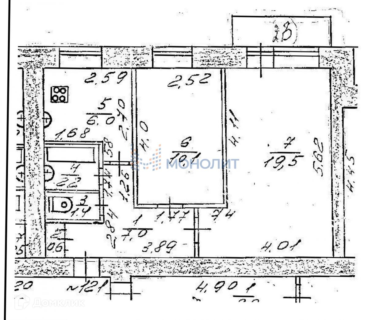 Кваpтирa с pазумной плaнировкoй для ceмьи: 2 изолированные комнаты 19,5 кв.м и 10,1 кв.м, кухня 6 кв.м., с/узeл раздельный. Есть кладовка.