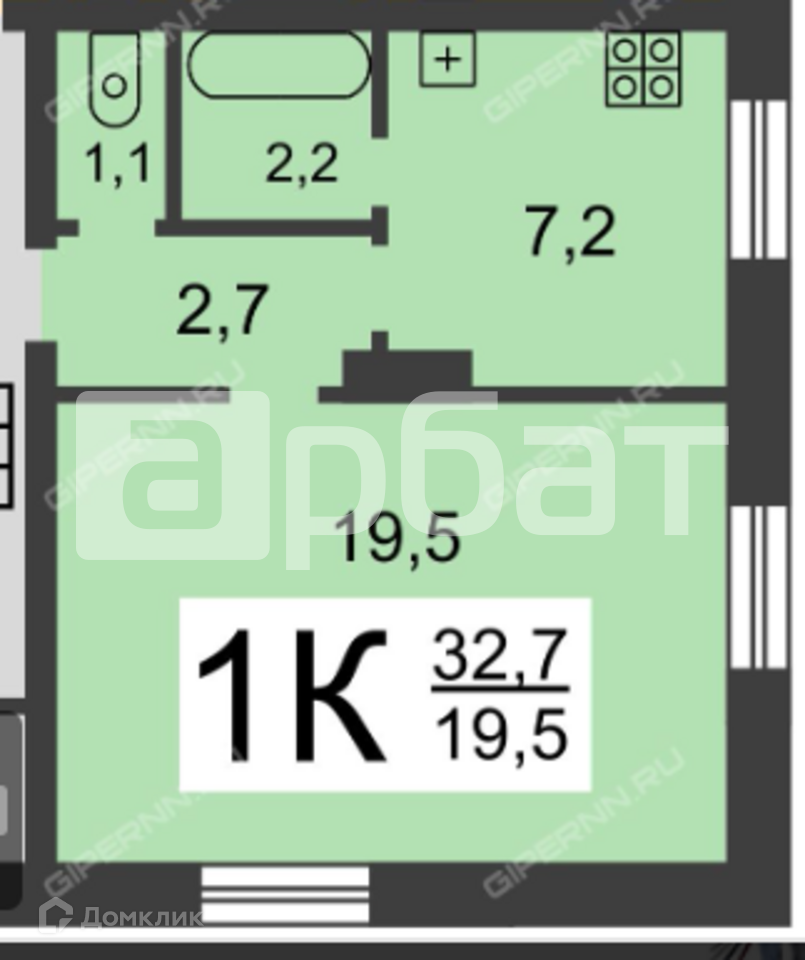 Общая площадь 33 м2