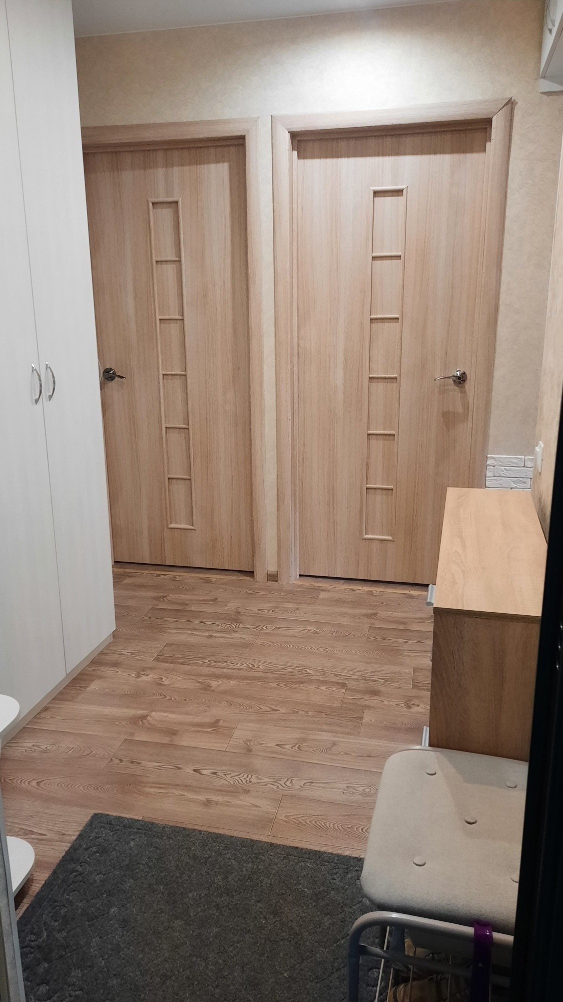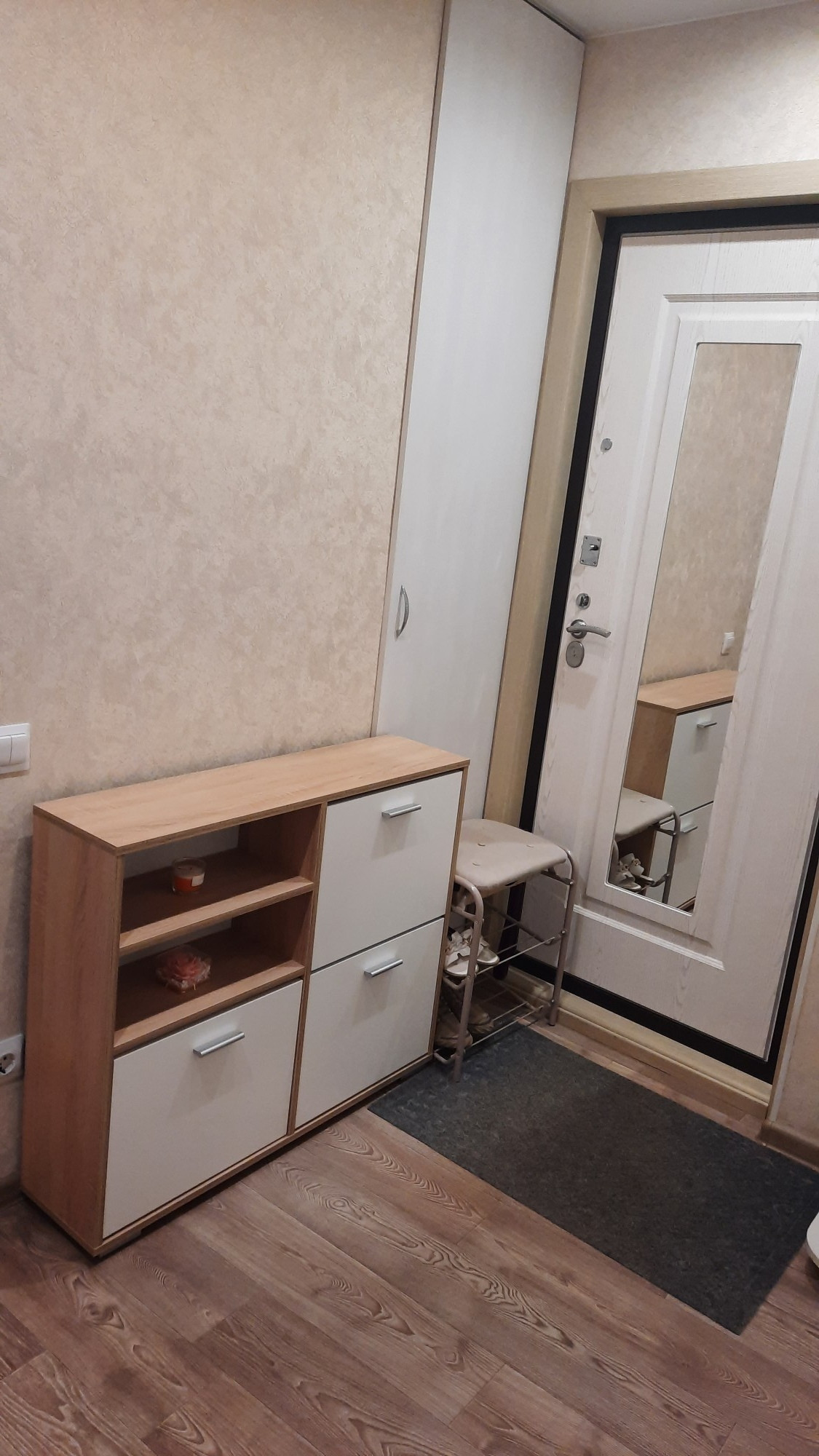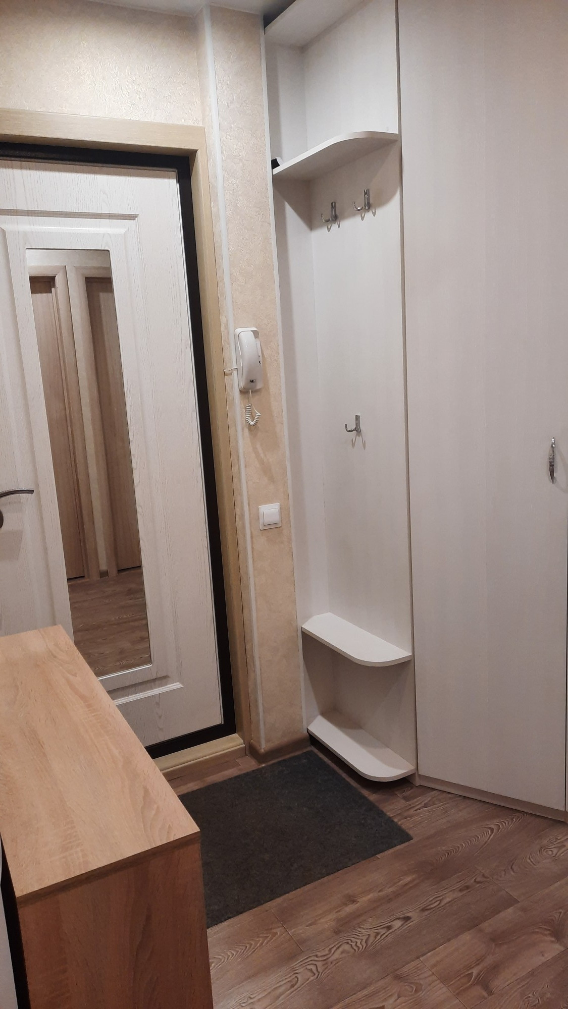 Квартира полностью готова к переезду новых жильцов (кухонный гарнитур,  шкаф в прихожей).