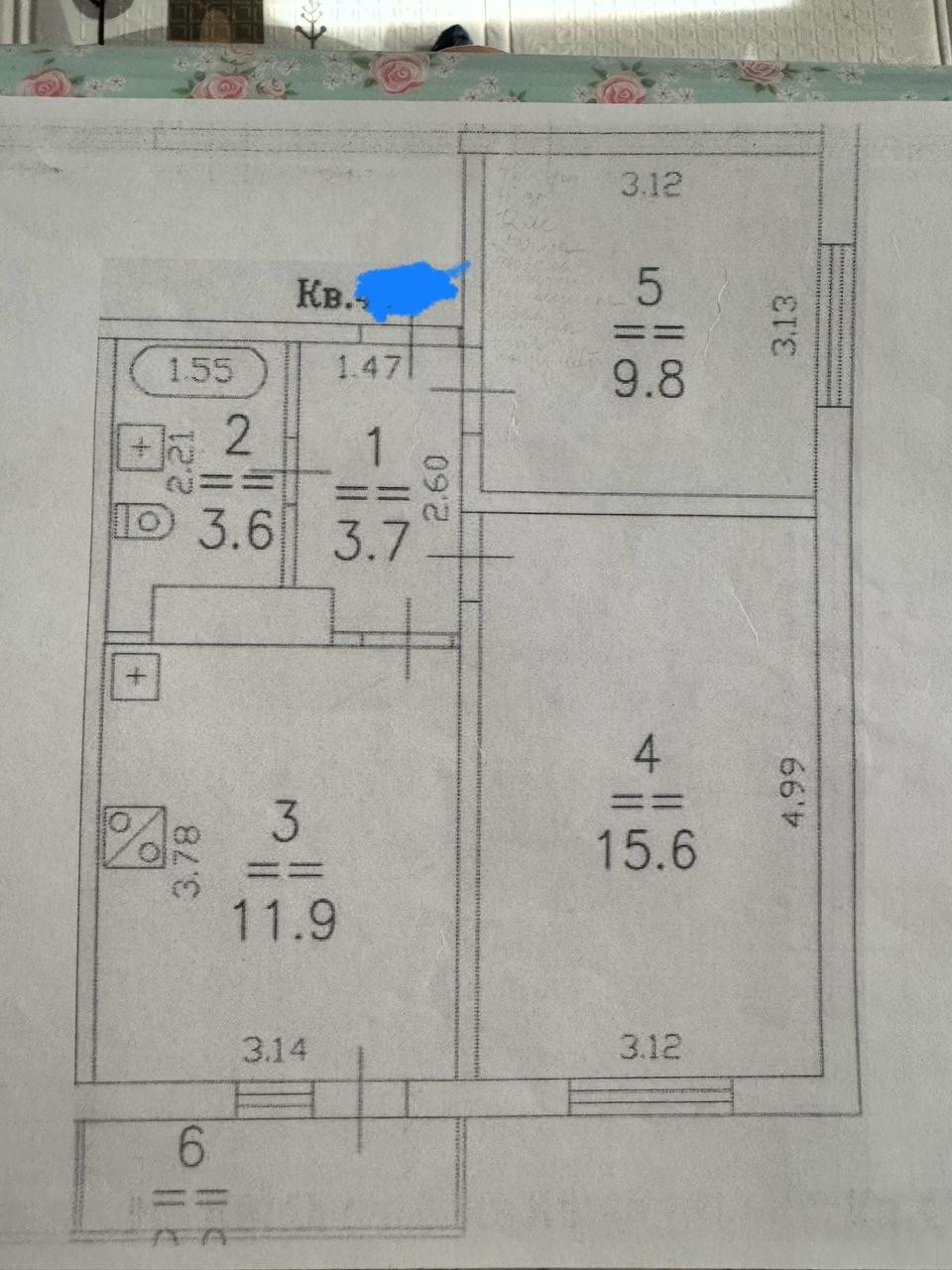 Общая площадь 45.5 м2