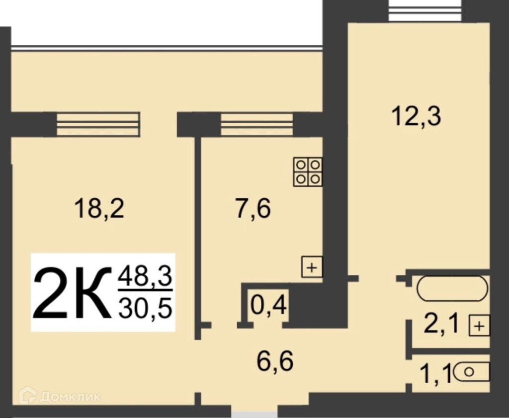 Общая площадь 48.3 м2