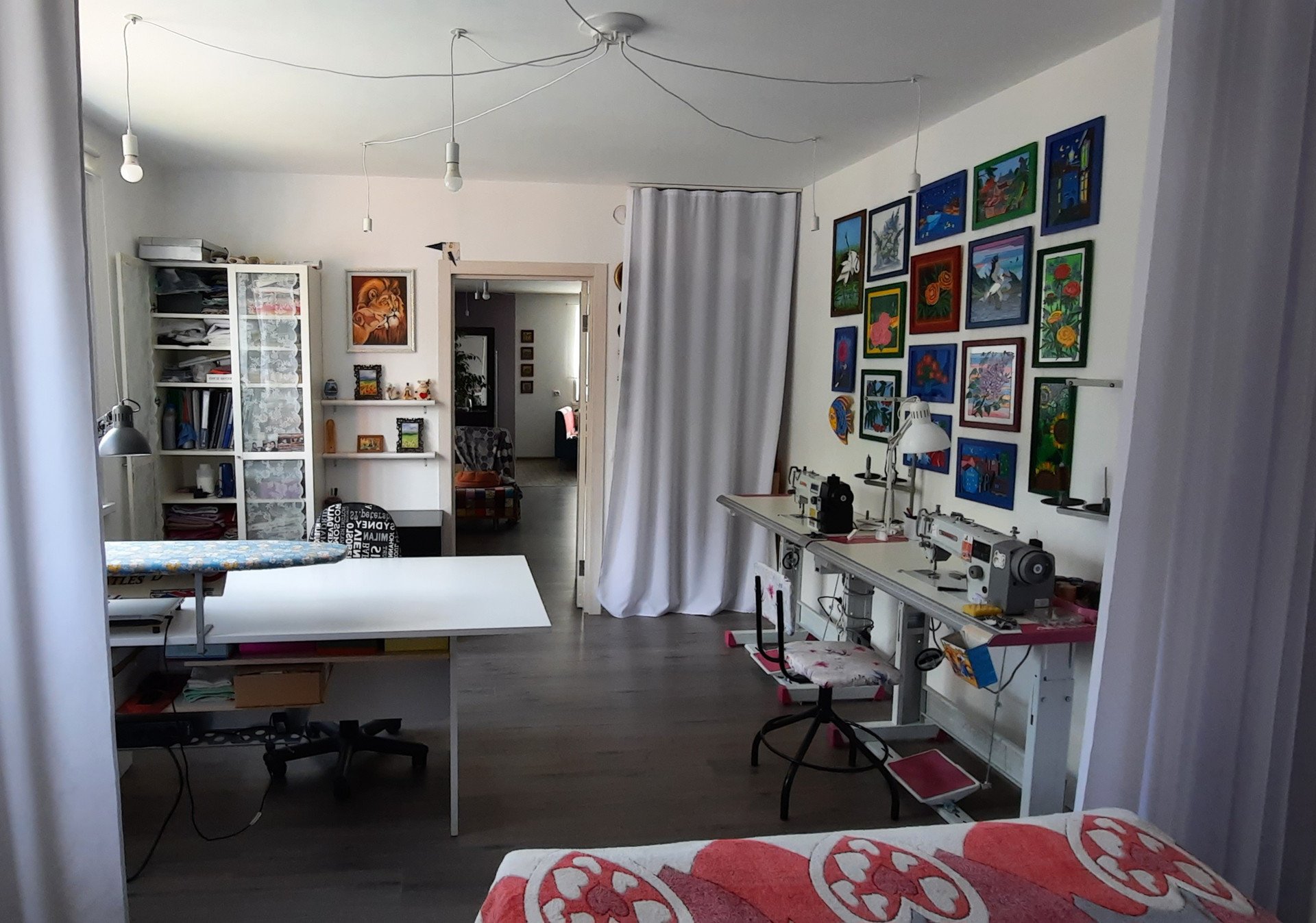В квартире сделана перепланировка, официально узаконенная. Благодаря перепланировке был убран узкий пятиметровый коридор и образовалось большое открытое пространство.