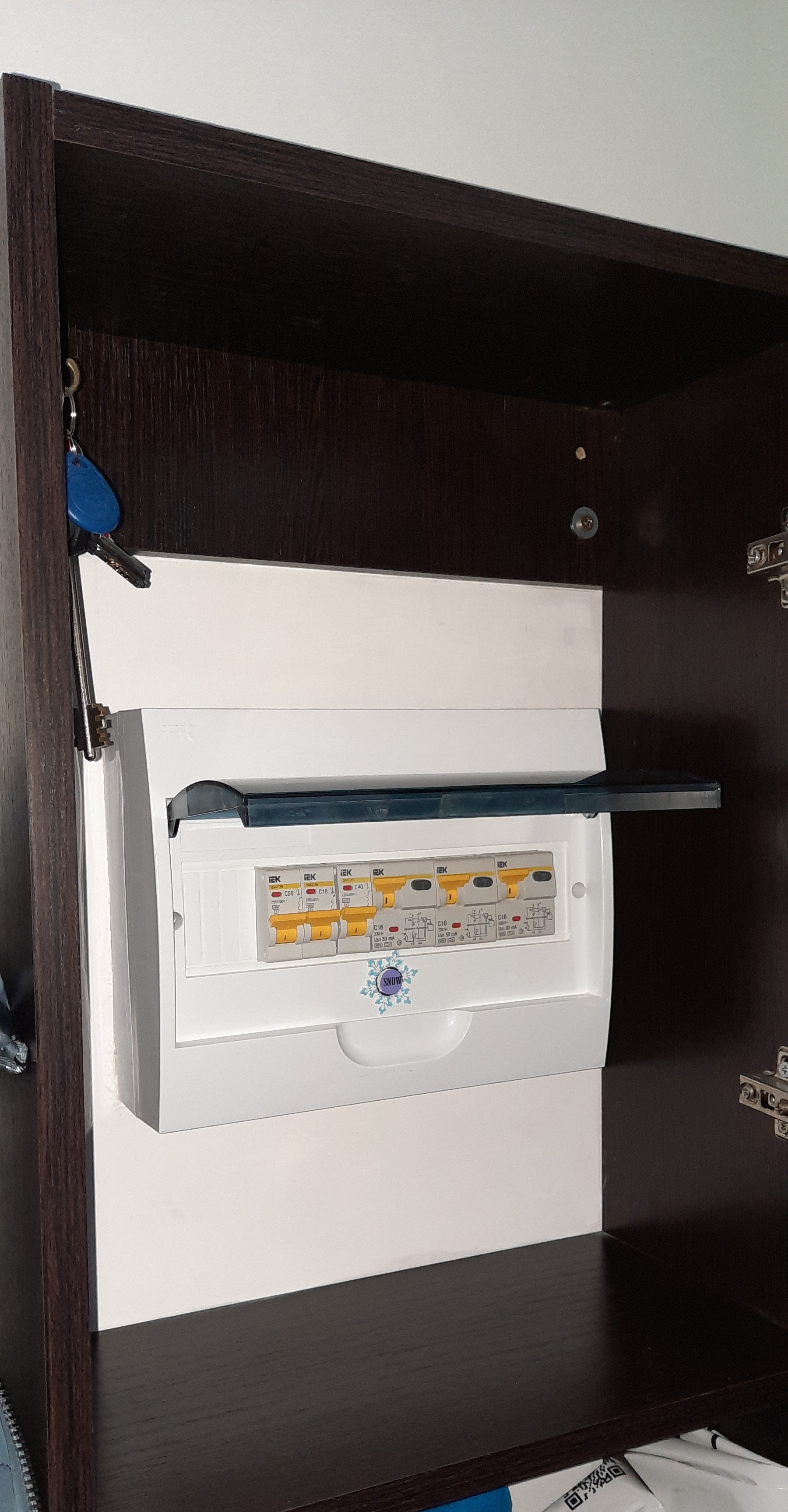 Щиток спрятан в зеркальном шкафчике в прихожей.
