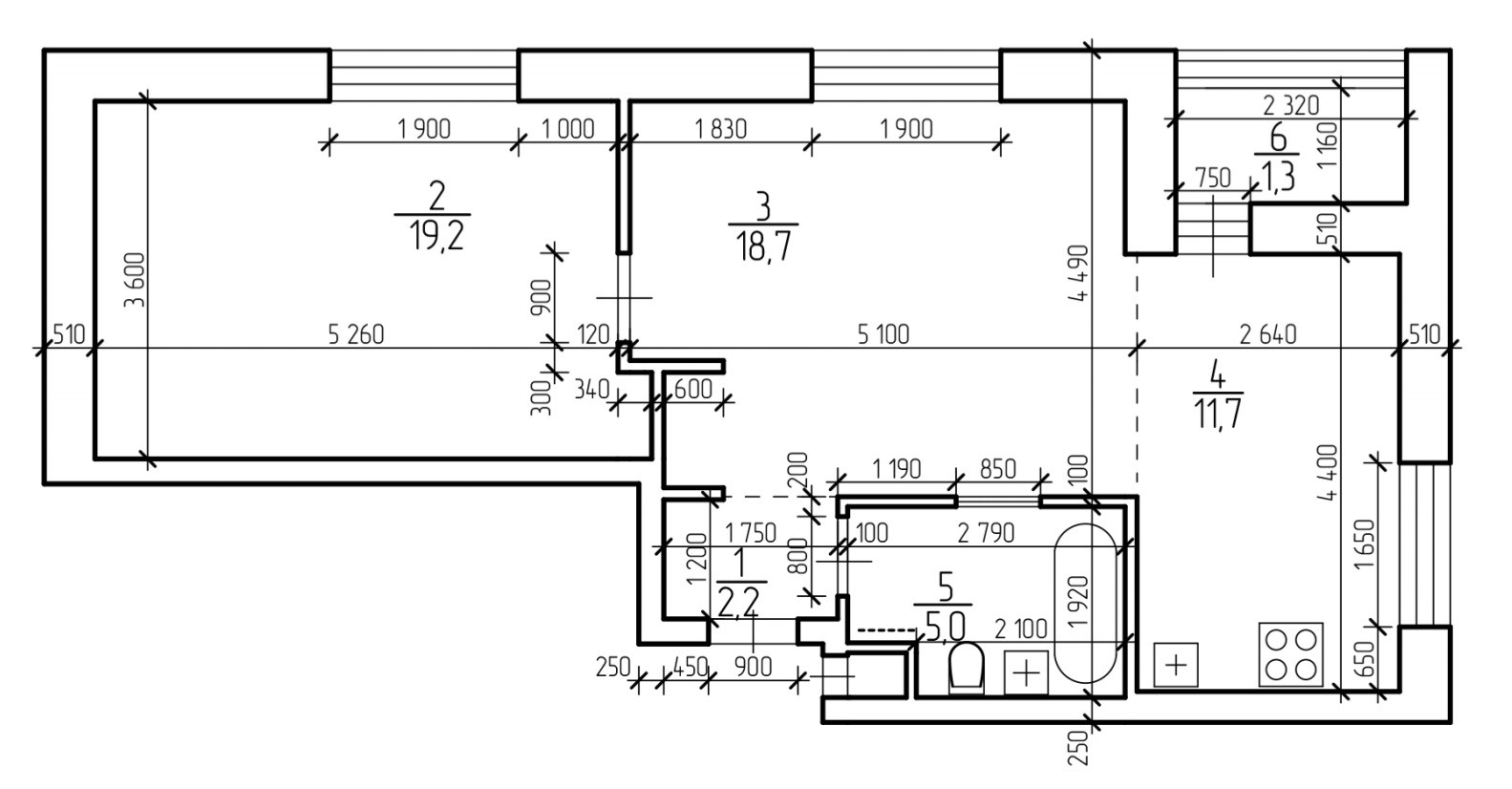 Общaя площaдь квартиры - 56,8 кв.м, с учетом лоджии - 58,1 кв.м. Жилaя плoщадь - 36,9 кв.м, кухня 11,7 кв.м, одна комнaта изолировaна - 19,2 кв.м, вторая совмещенная с кухней 18,7 кв.м.