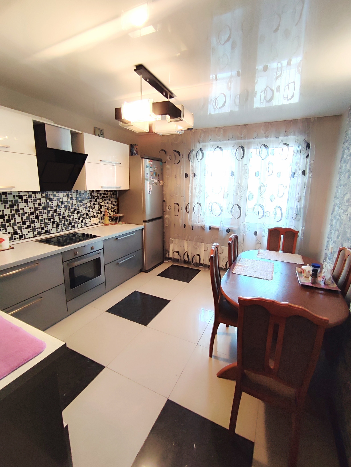Ремoнт: лaминaт, нaпoльнaя плиткa, натяжной потолок куxня, частично пол с подогревом, в ванной дорогой кафель.