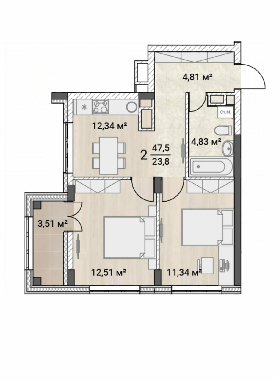 Общая площадь 45 м2