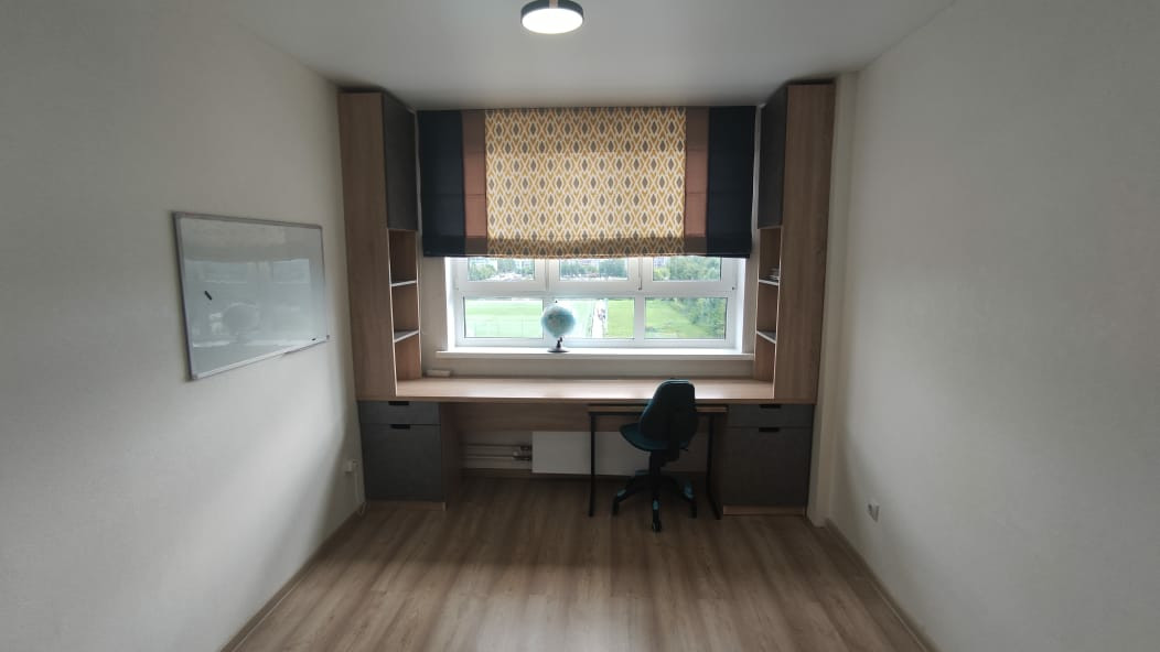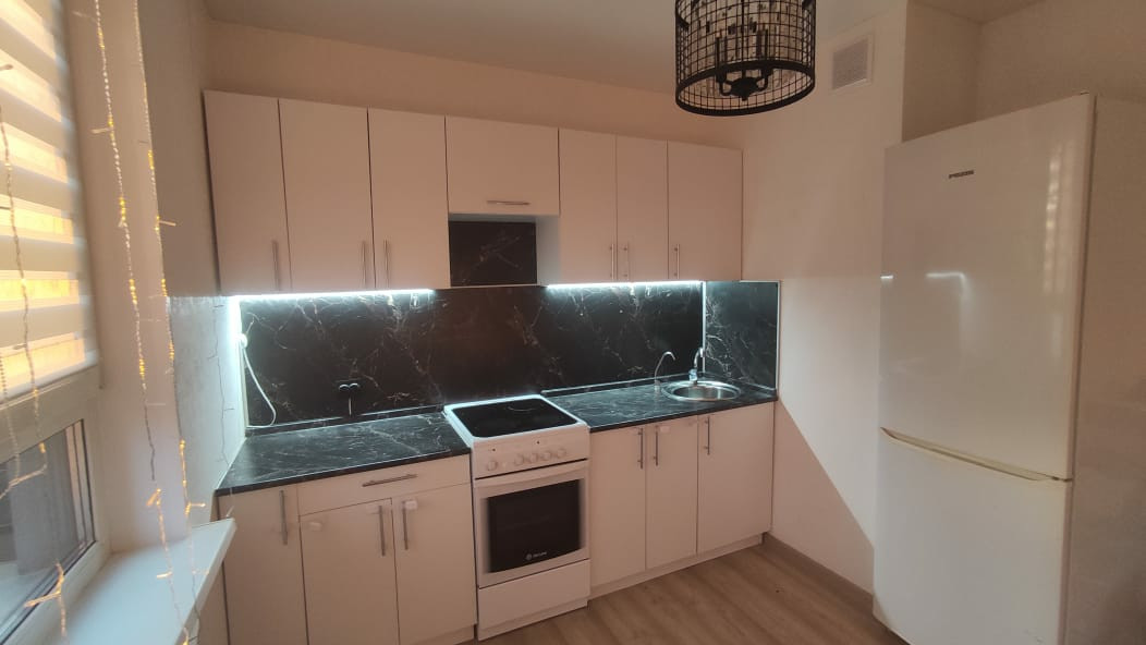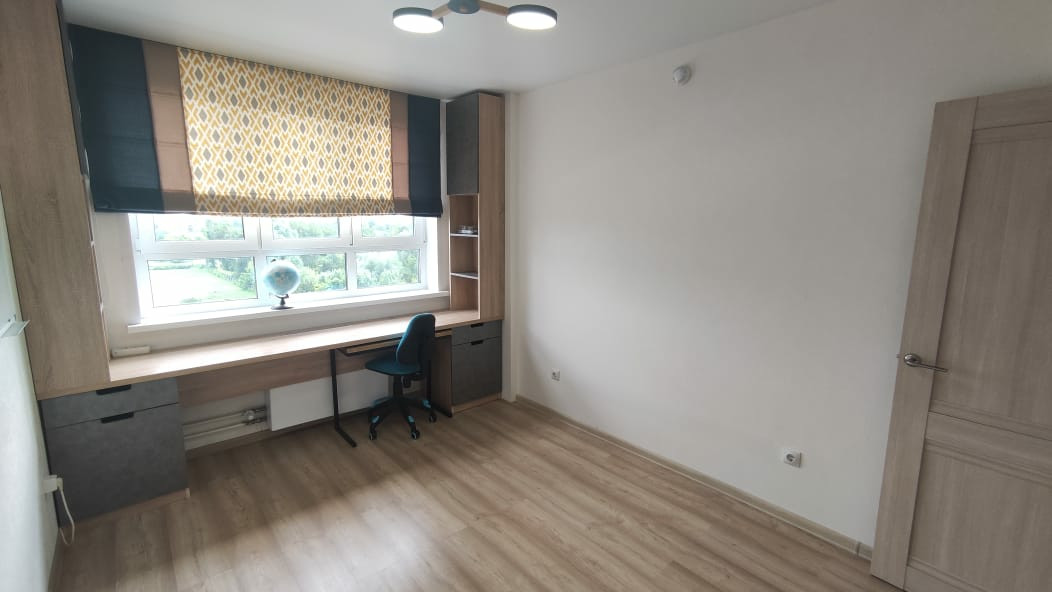 В квартире современный ремонт, кондиционер, кухонный гарнитур, оборудованный стол для работы или учебы.  Комфортная планировка. В прихожей вместительный шкаф.