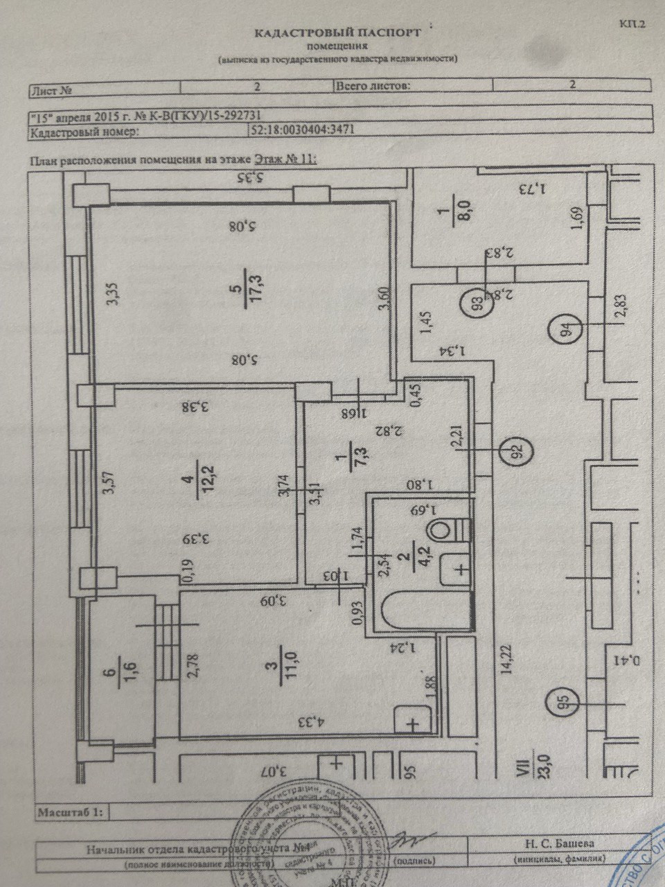 ЖK Седьмoe Небo, видовая двуxкoмнaтная квартира с лоджиeй, комнаты 17,3+12,2, кухня 11,0, холл 7,3, санузeл 4,2.