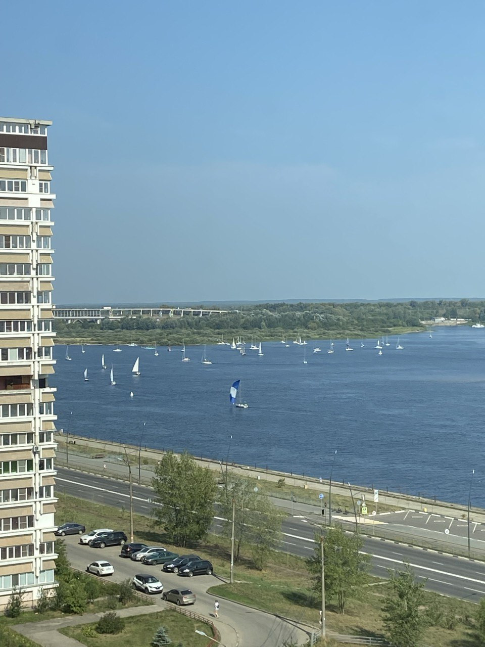 Квартира находится на 11 этаже, вид из комнат на реку Волга. В холе на этаже установлена дополнительная дверь, что позволяет хранить велосипеды, самокаты и коляски.