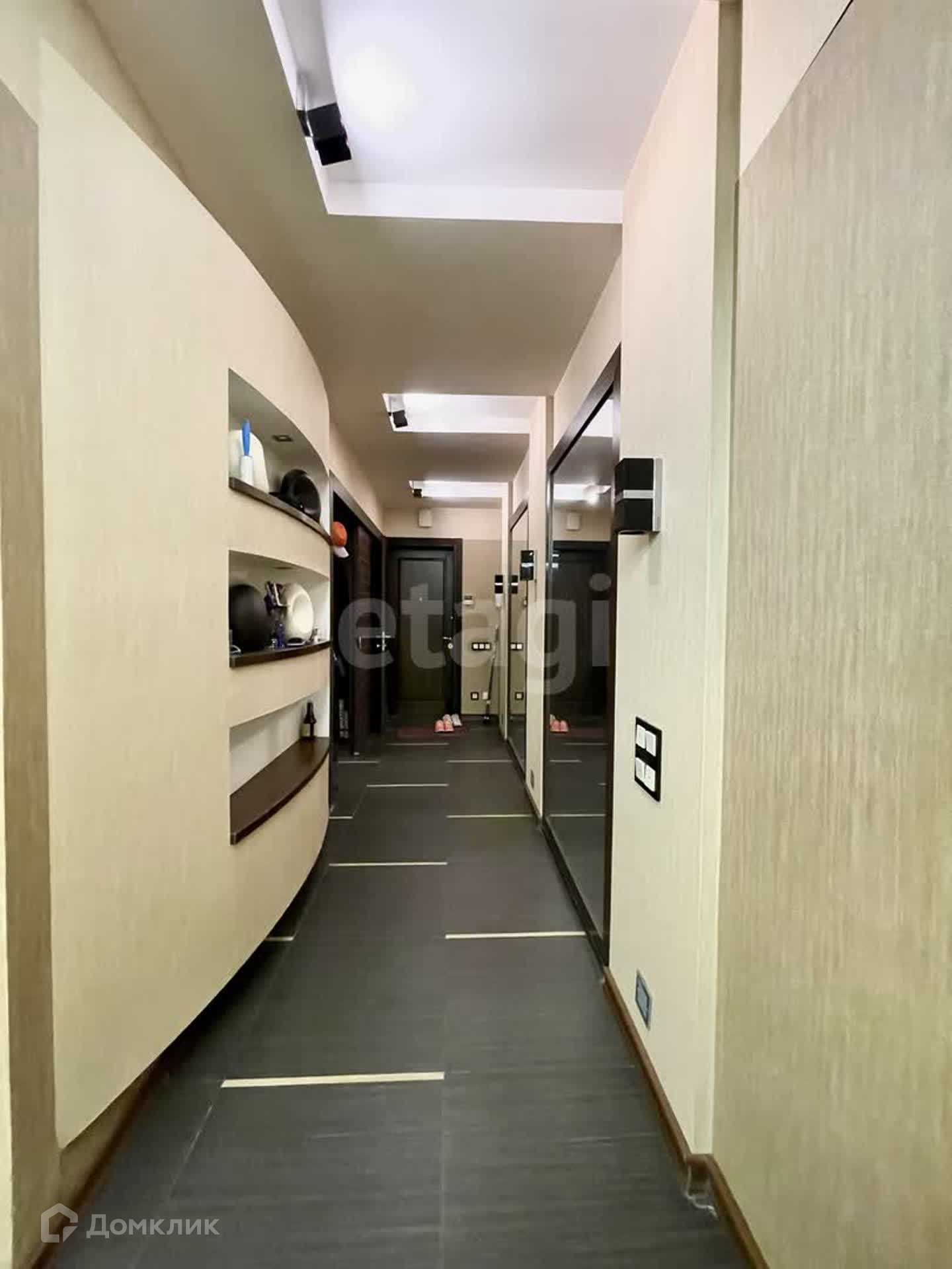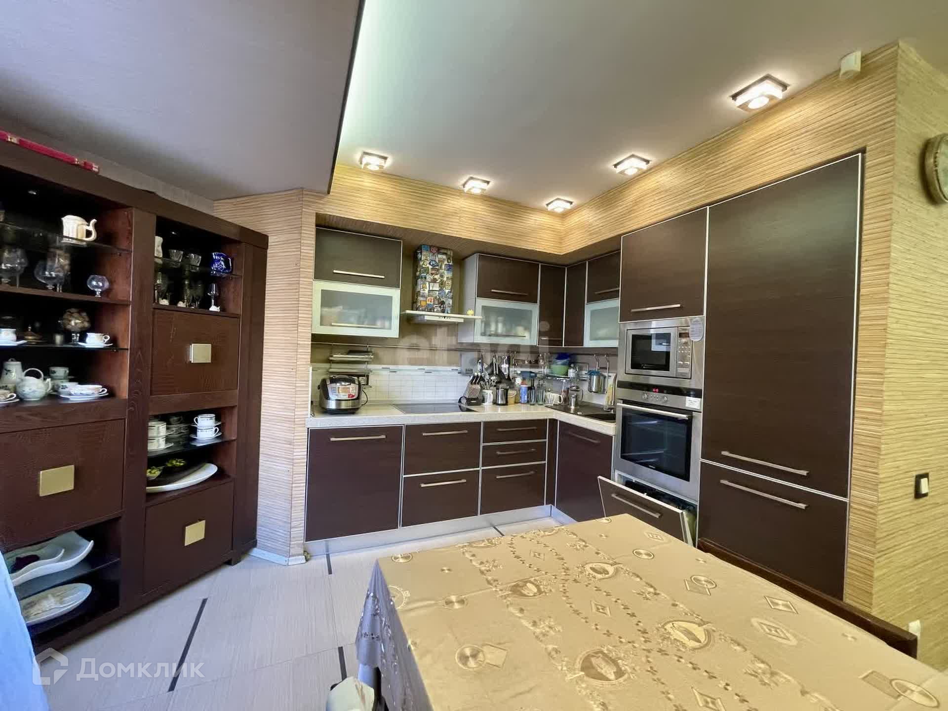 В квартире три вместительные гардеробные комнаты (в прихожей и в двух спальнях). Большая гостиная совмещена с кухней. В доме полностью произведен капитальный ремонт труб системы водоснабжения.